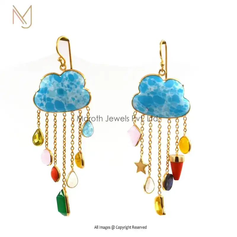 14k Gold Chrysoprase Multi Gemstone Cloud Earrings Manufacturer