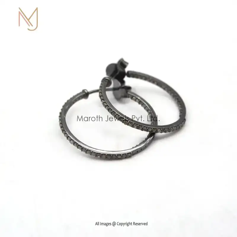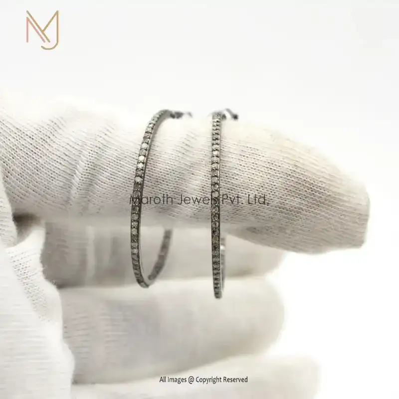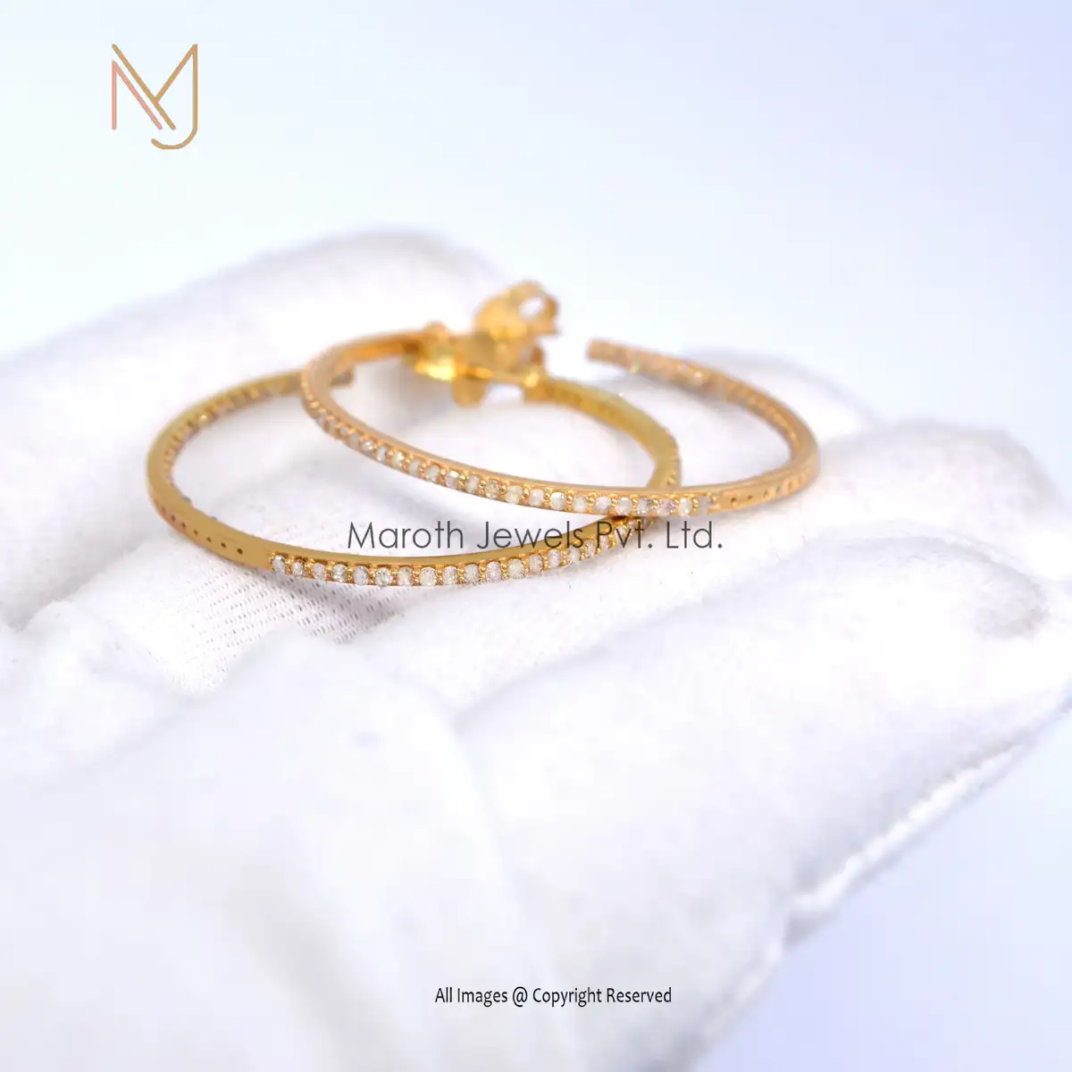 14K Gold Pave Diamond Hoop Earrings Jewelry Manufacturer