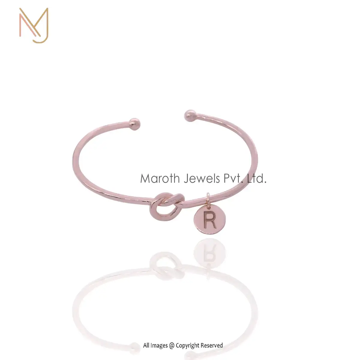 14K Rose Gold Adjustable Knot A Initials Bangle Jewelry Manufacturer