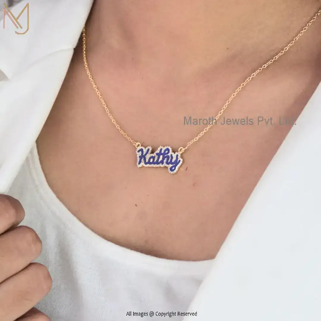 14K Rose Gold Bling Script Enamel Nameplate Necklace Manufacturer