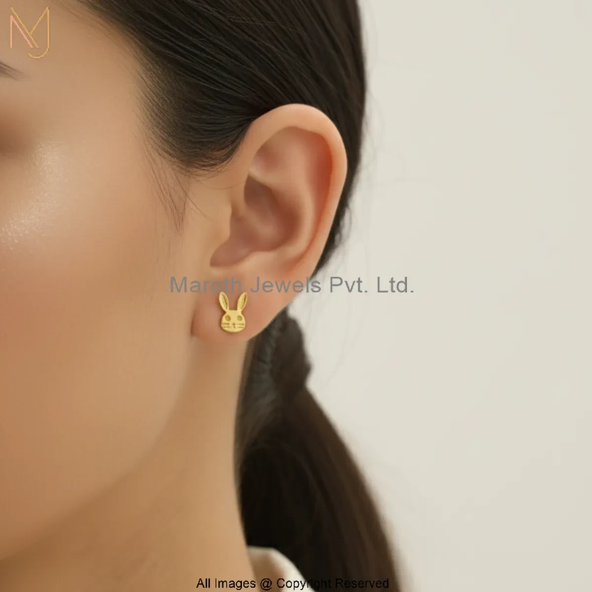 14K Rose Gold Bunny Stud Earring Manufacturer