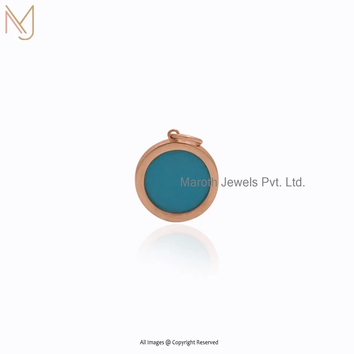 14K Rose Gold Cubic Zircon & Turquoise Gemstone Evil Eye Compass Handmade Pendant USA