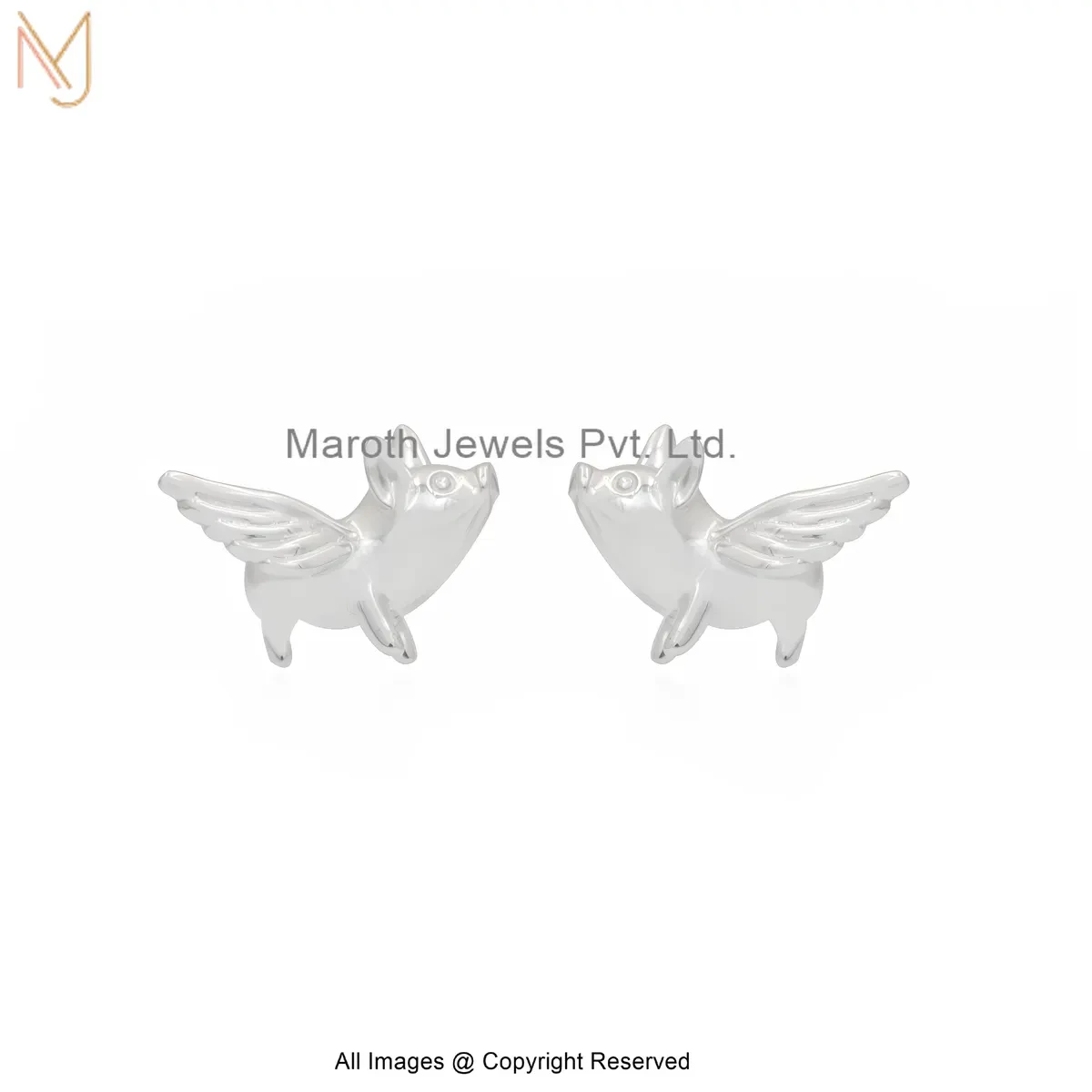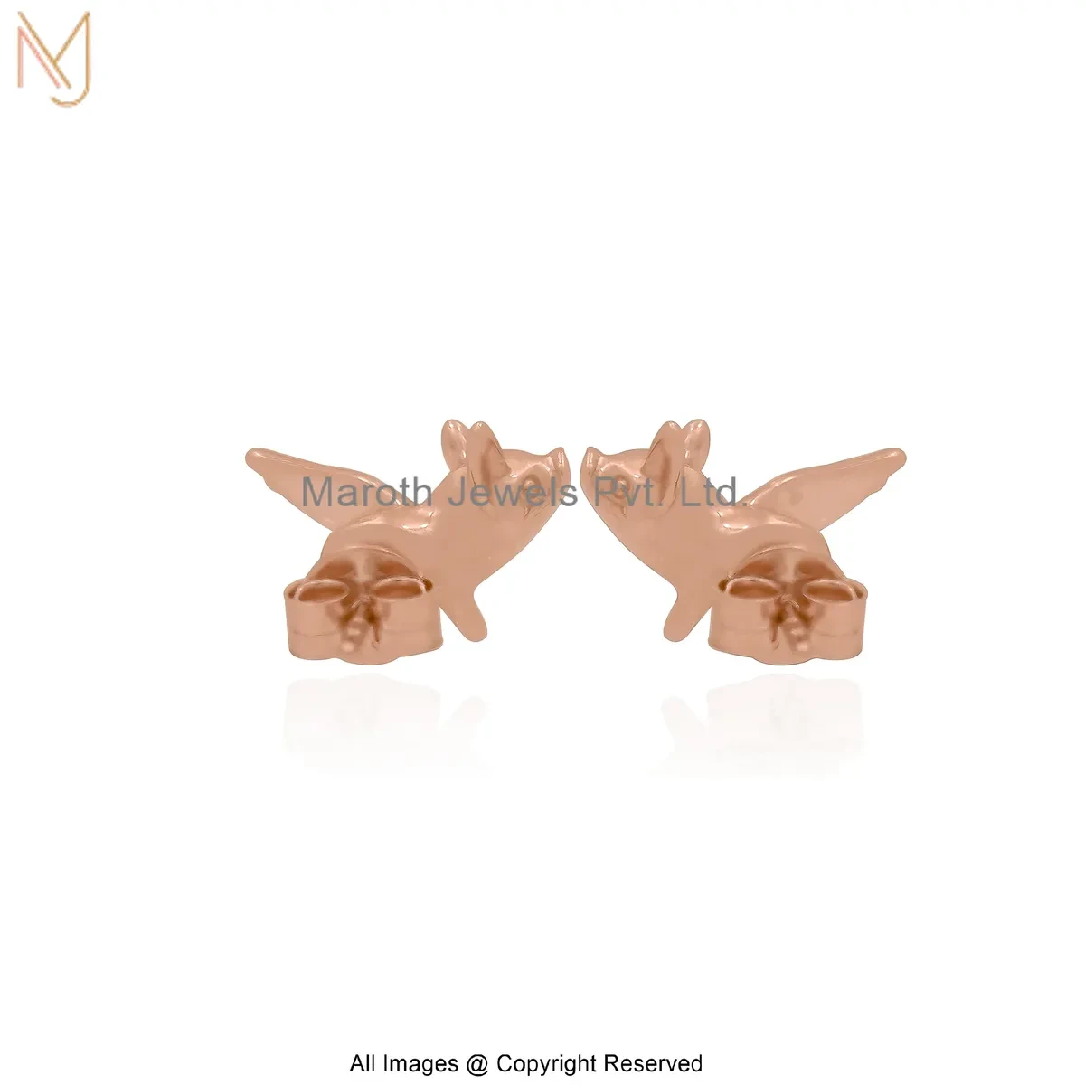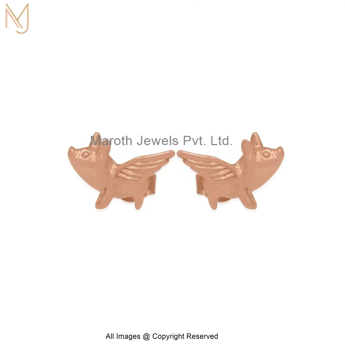 14K Rose Gold Flying Pig Angel Stud Earring Custom Jewelry
