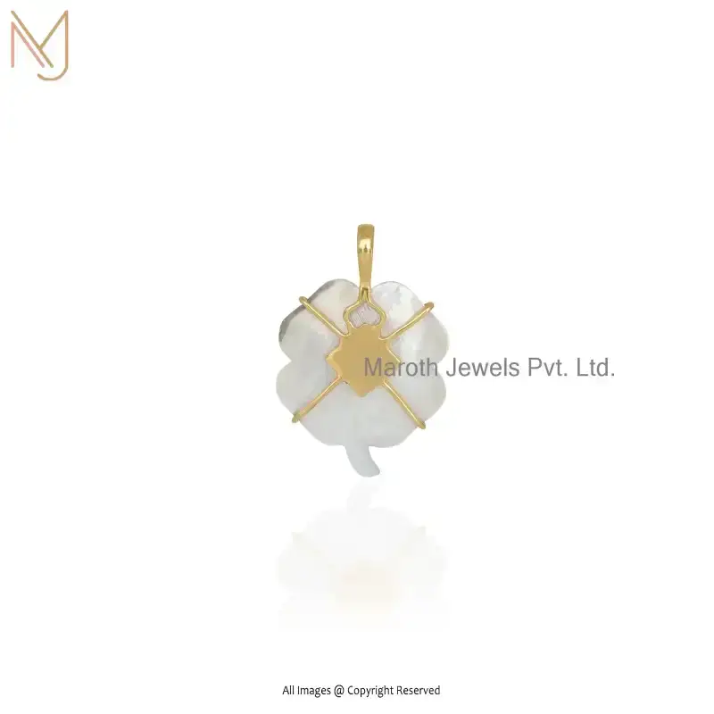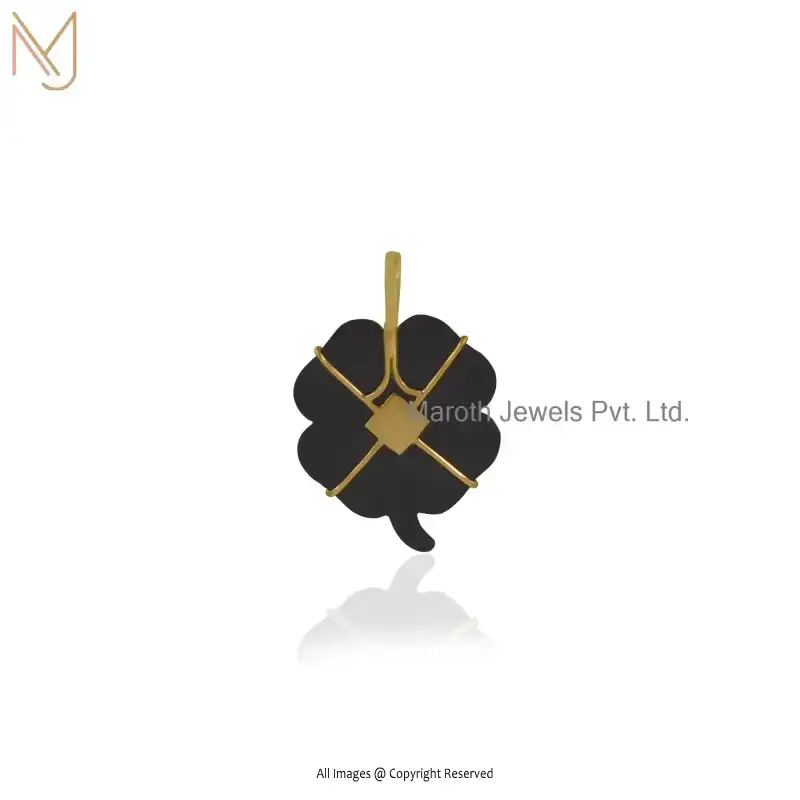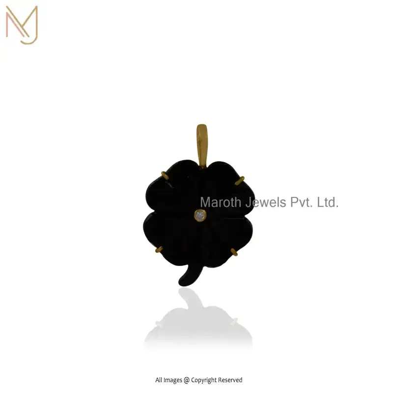 14K Rose Gold Malachite And Moissanite Gemstone Clover Pendant Manufacturer