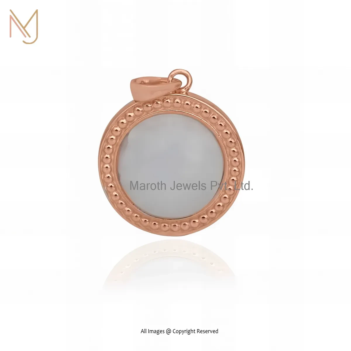 14K Rose Gold Rainbow Moonstone Round Pendant Jewelry Supplier