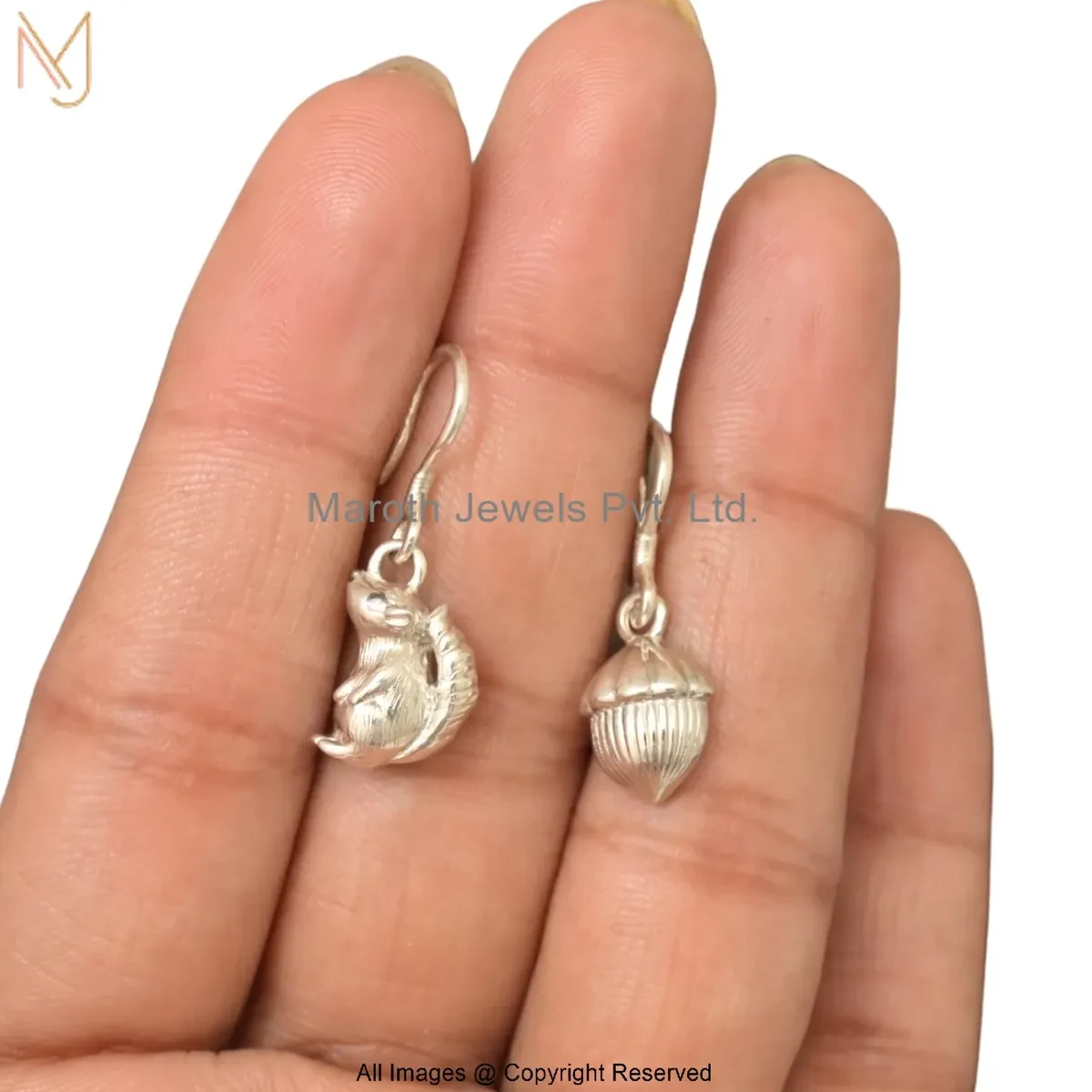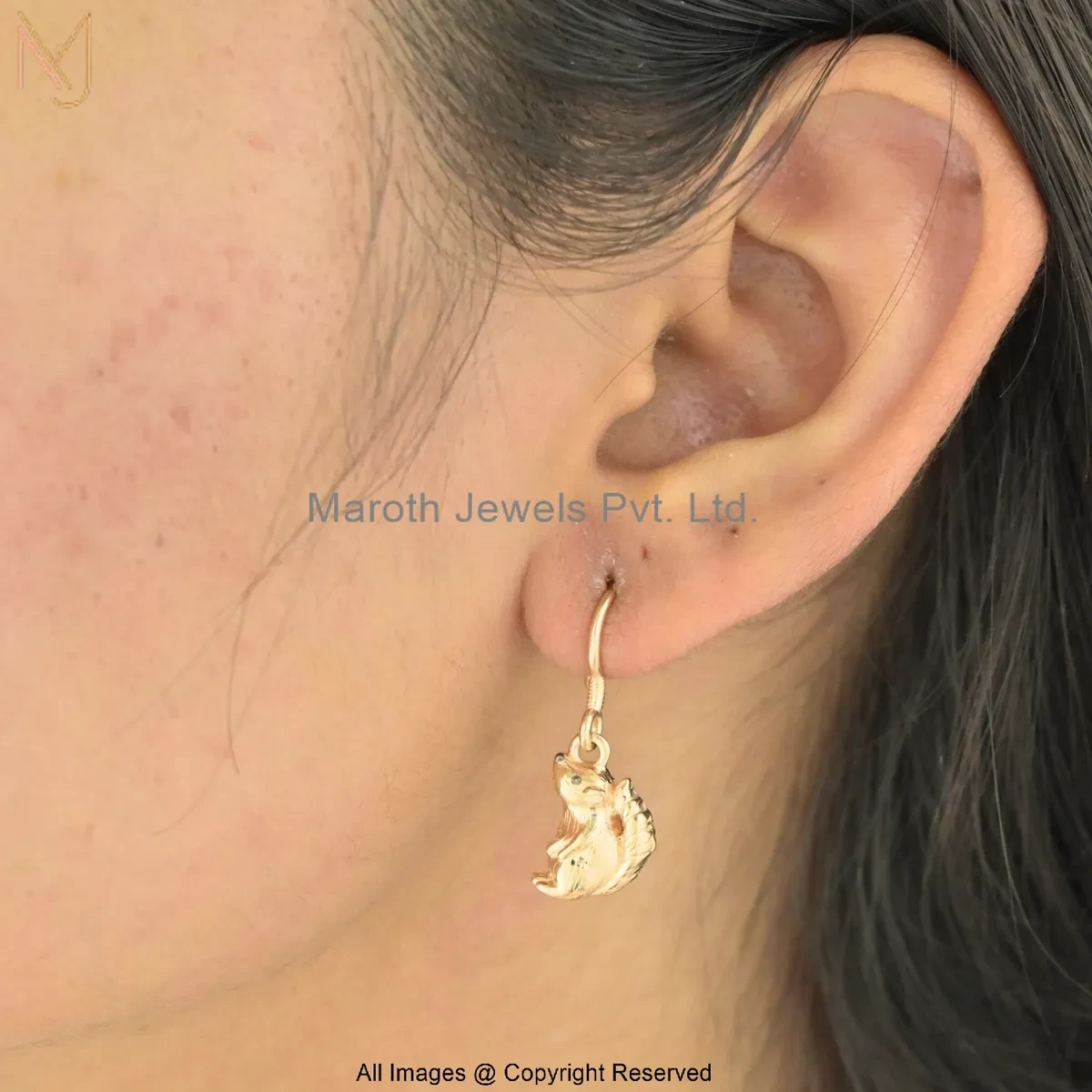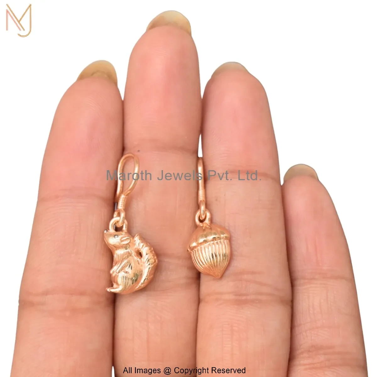 14K Rose Gold Squirrel & Acorn Charm Earrings Custom Jewelry