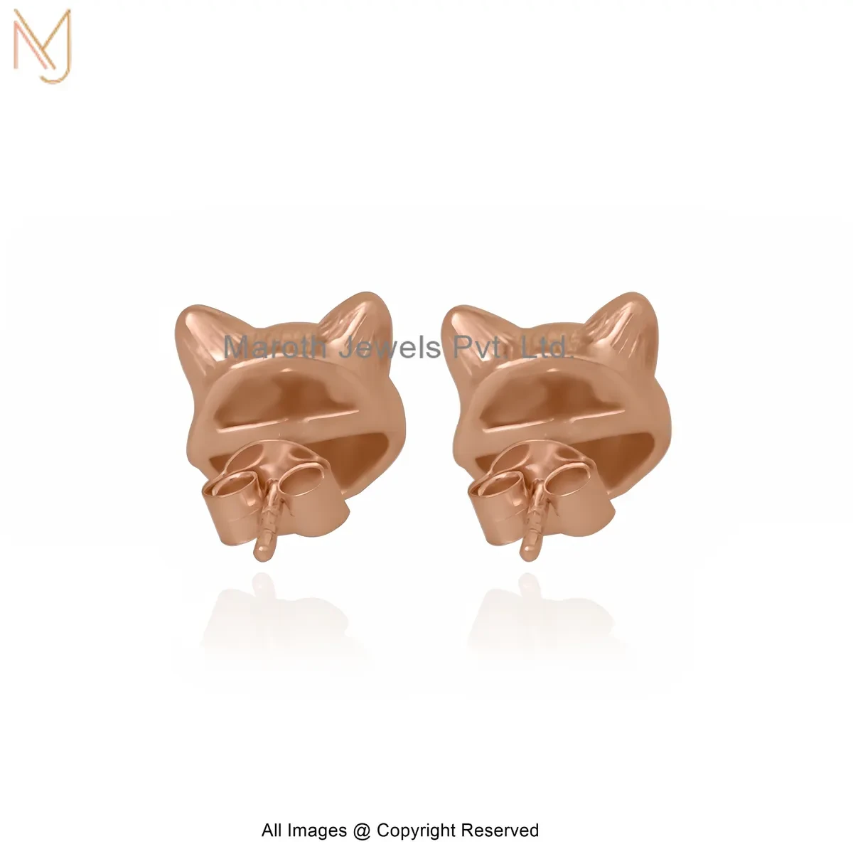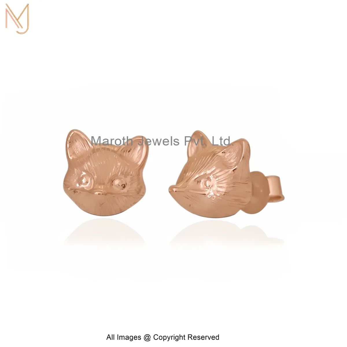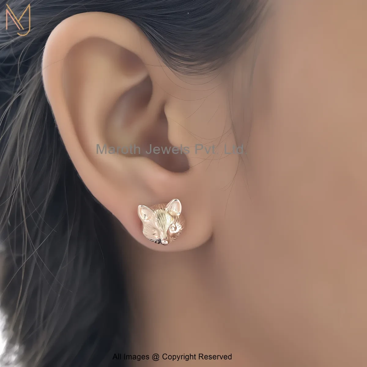 14K Rose Gold Tiny Fox Head Stud Earring Custom Jewelry