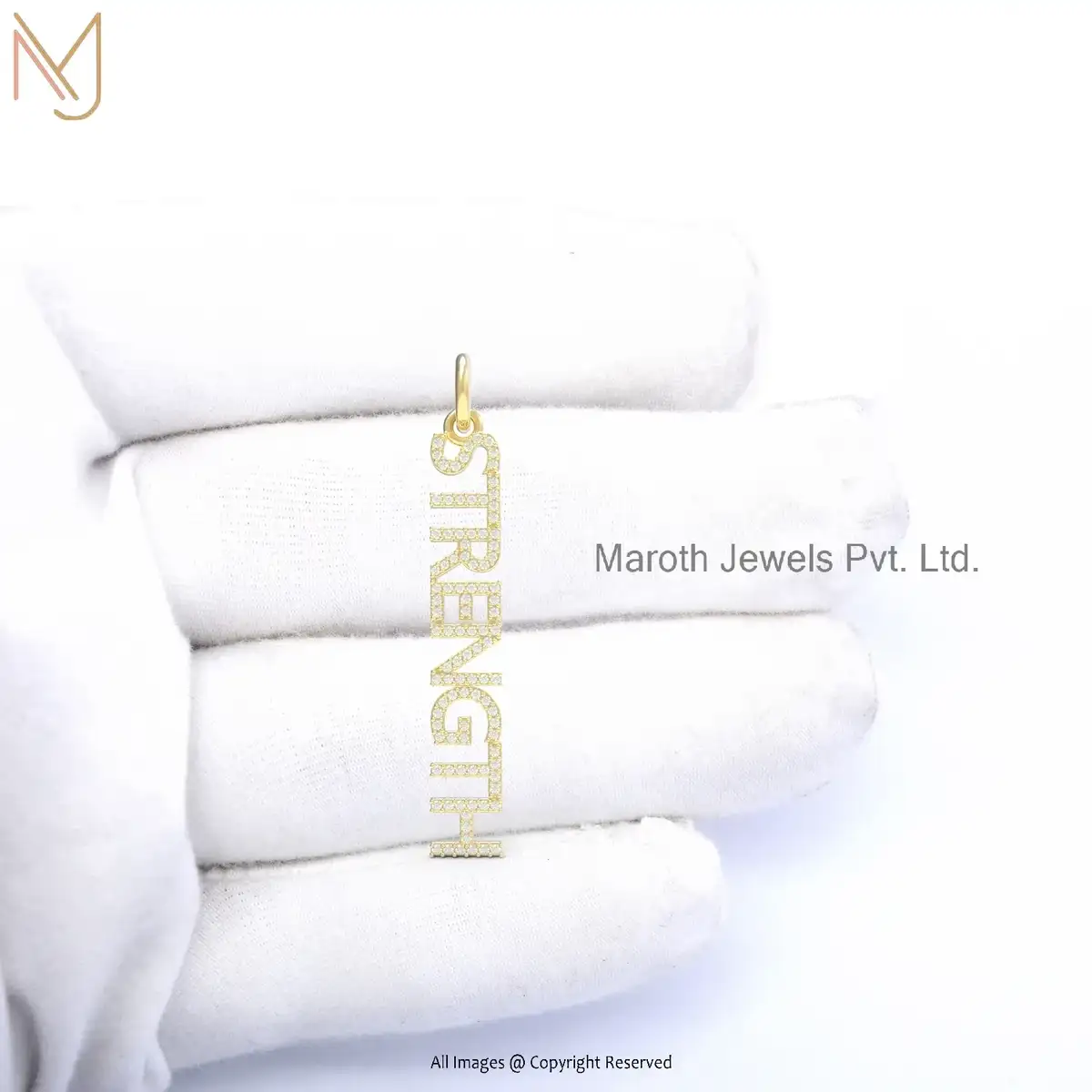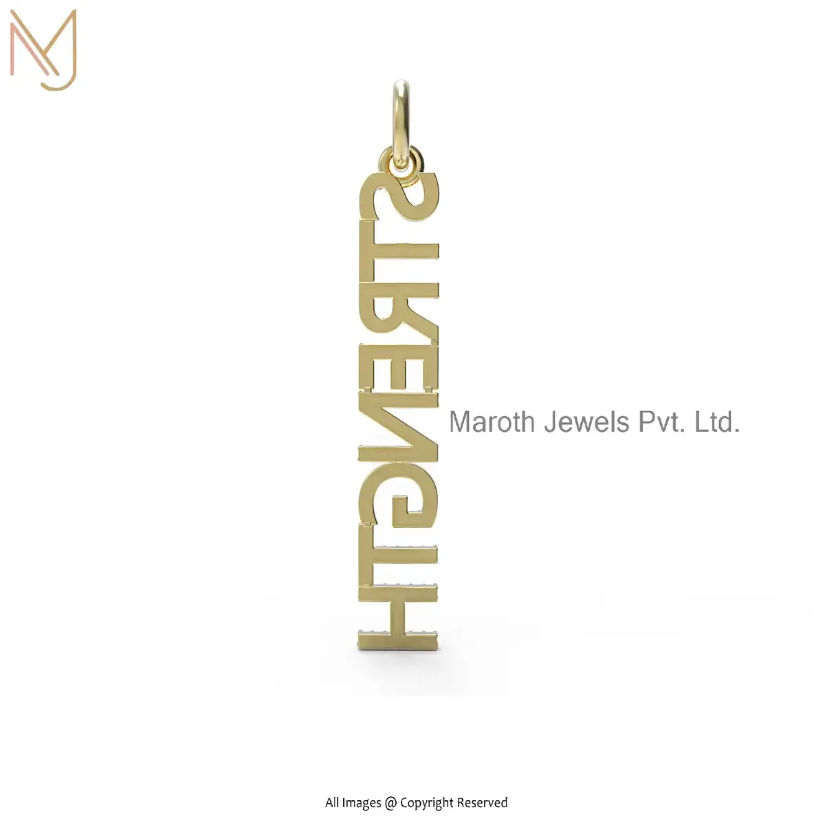 14K Soild Yellow Gold Diamond Strength Name Plate Pendant Jewelry USA