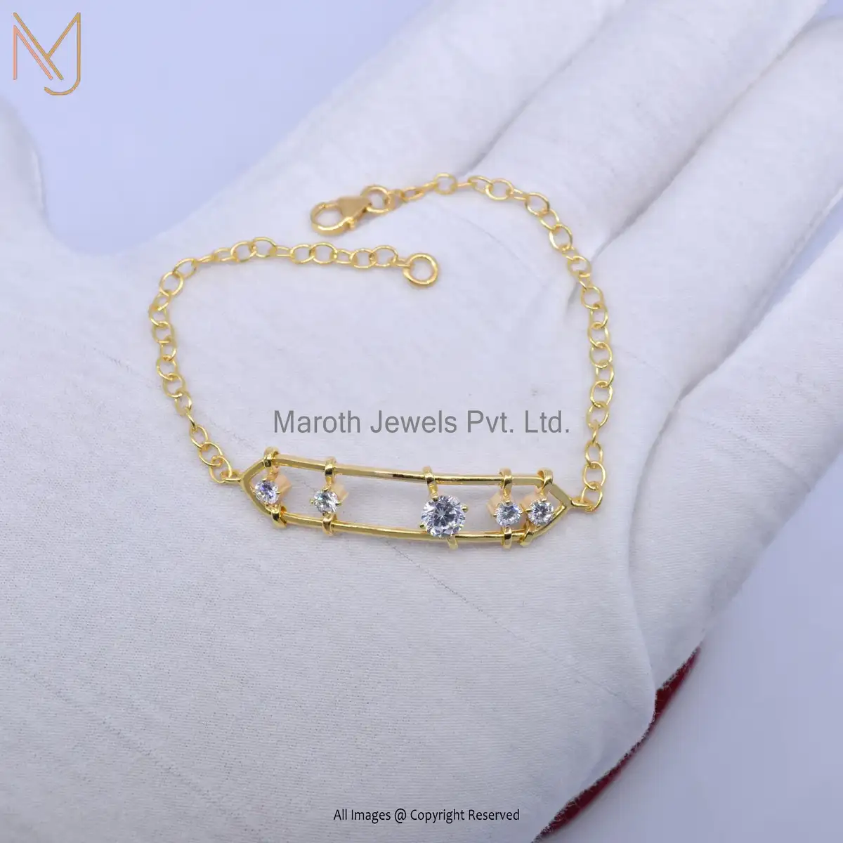 14K Soild Yellow Gold Moissanite Gemstone Moving Bracelet Jewelry USA