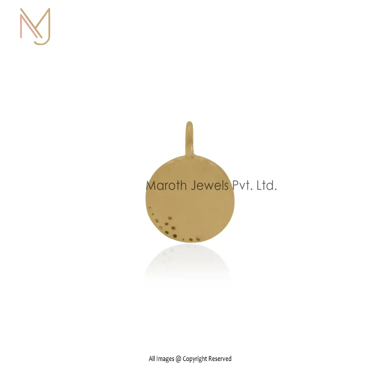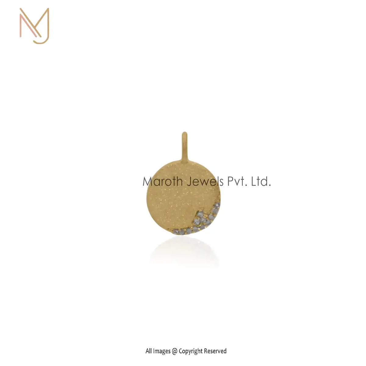 14K Soild Yellow Gold Pave Diamond Round Disc Pendant Jewelry Manufacturer