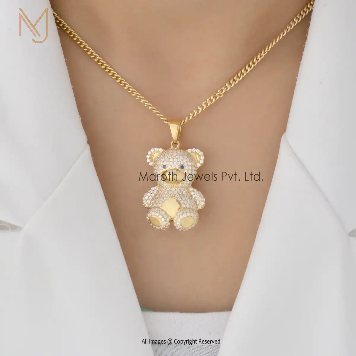 14K Soild Yellow Gold Pave Diamond White CZ And Blue CZ Pendant Jewelry USA