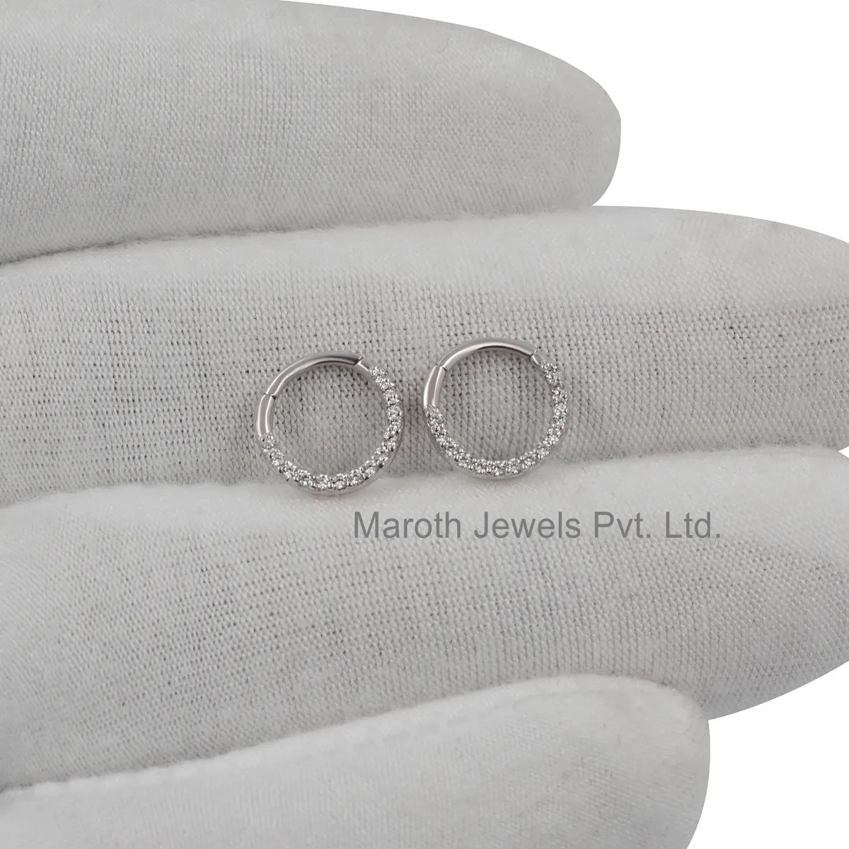 14K Solid Yellow Gold Diamond Hoop Earring Jewelry Supplier
