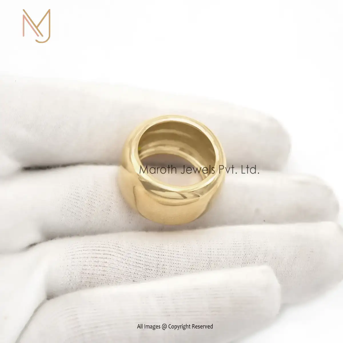 14K Solid Yellow Gold Dome Band Rings Jewelry Manufacturer
