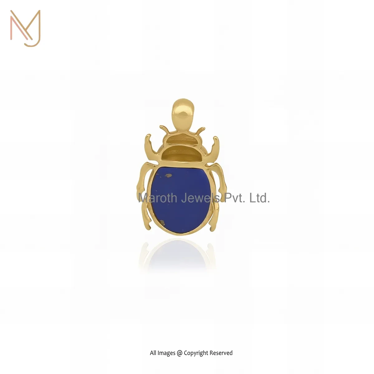 14K Solid Yellow Gold Lapiz Lazuli Scarab Pendant Manufacturer