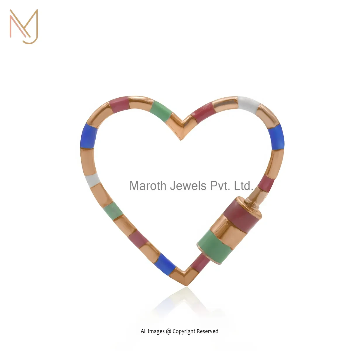14K Solid Yellow Gold Multi Enamel Carabiner Lock Manufacturer