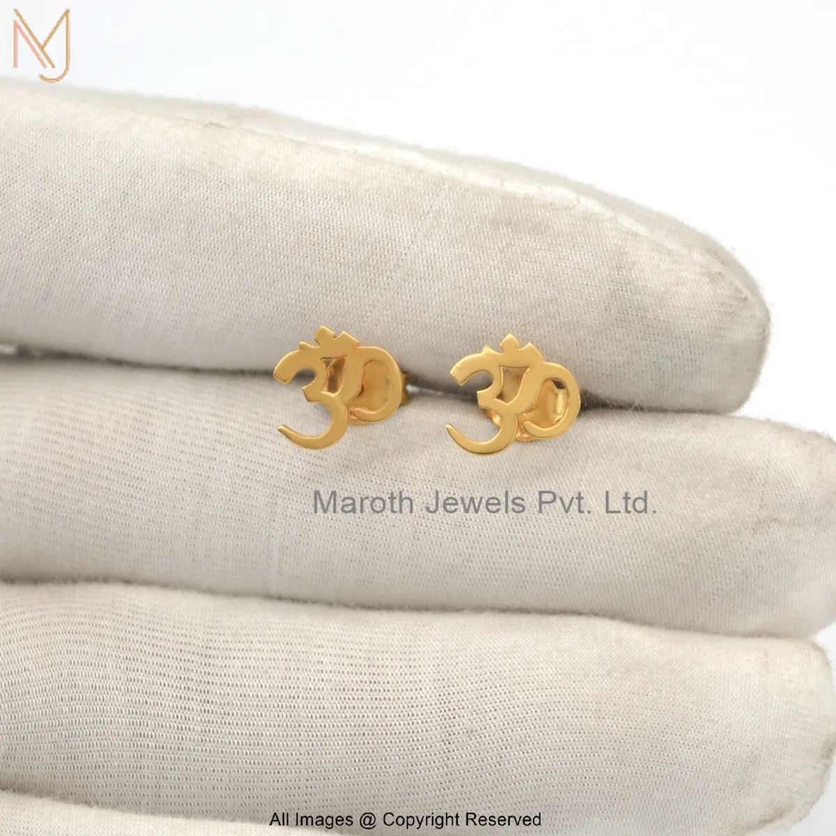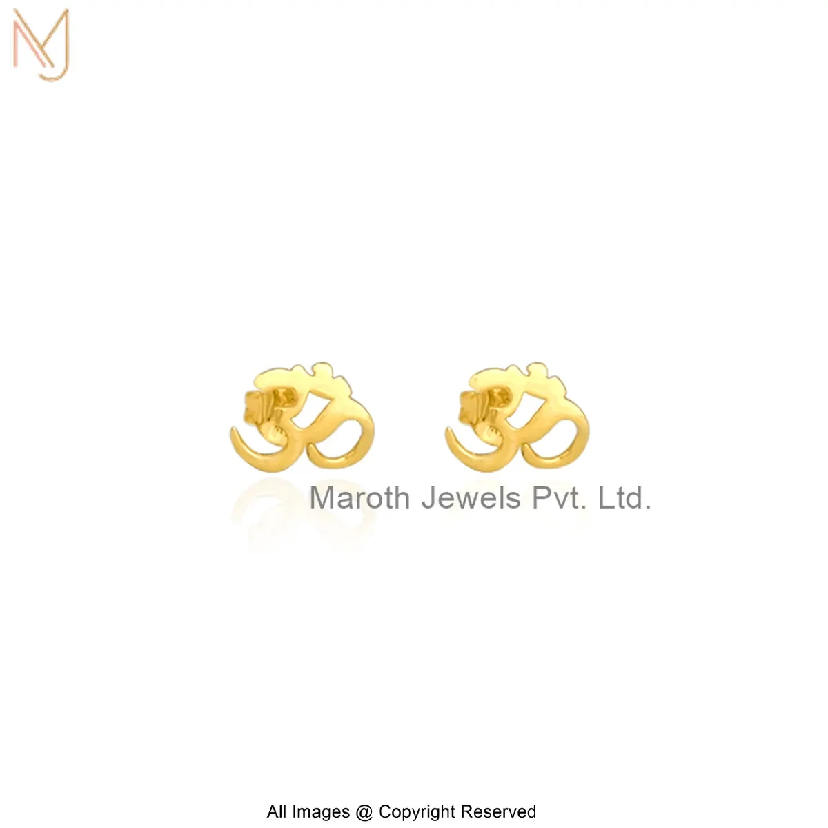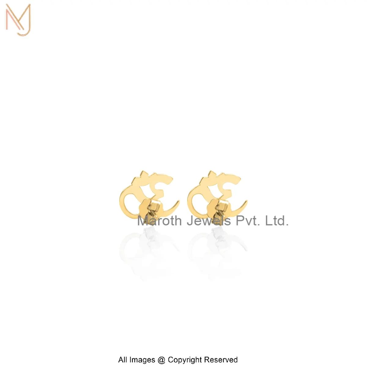 14K Solid Yellow Gold OM Studs Earrings Manufacturer