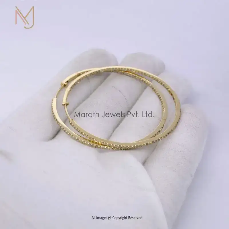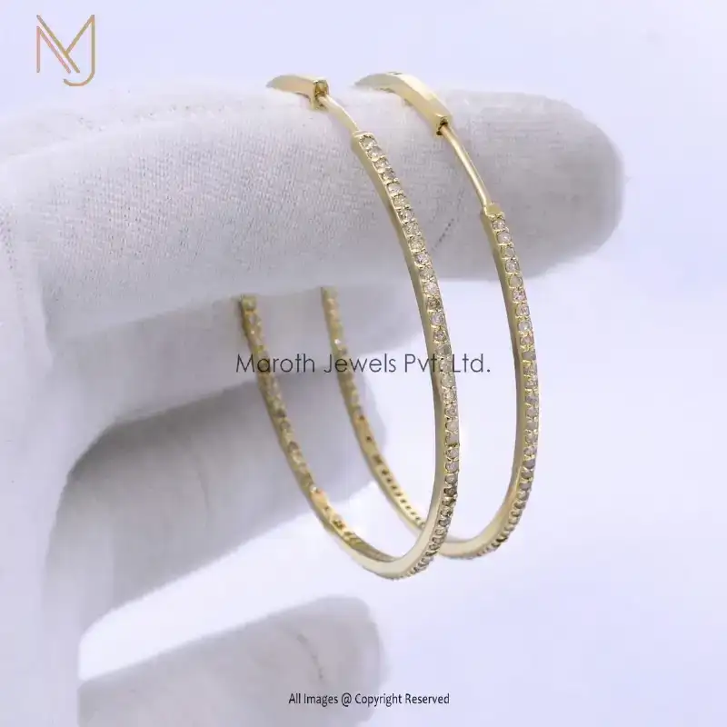 14K Solid Yellow Gold Pave Diamond Hoop Earrings Exclusive Jewelry Manufacturer