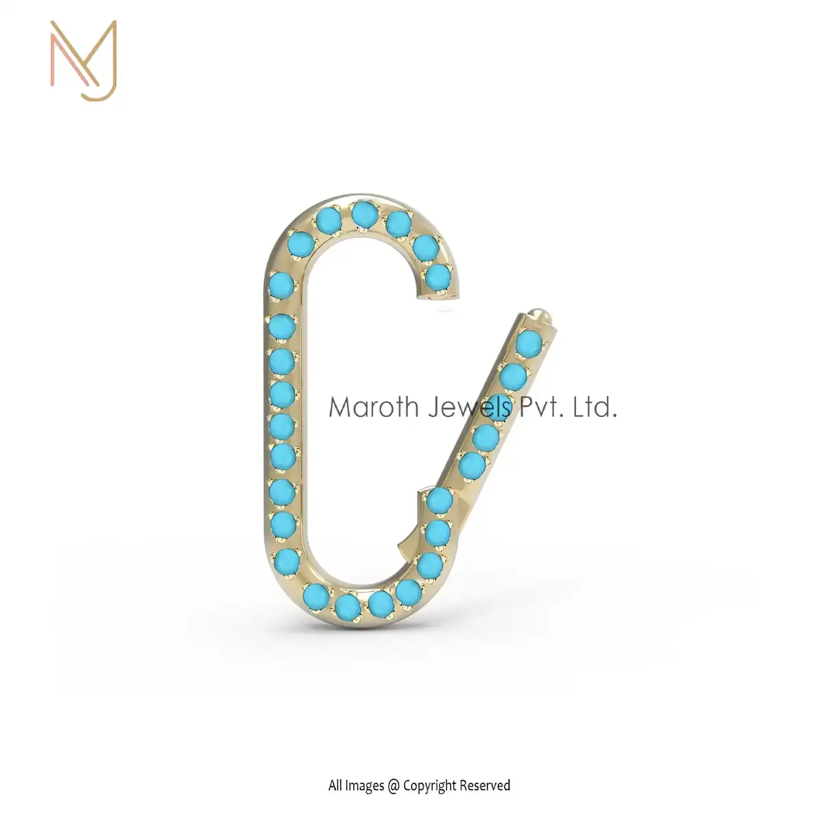 14K Solid Yellow Gold Turquoise Gemstone Oval Enhancer Charm Holder Jewelry Supplier