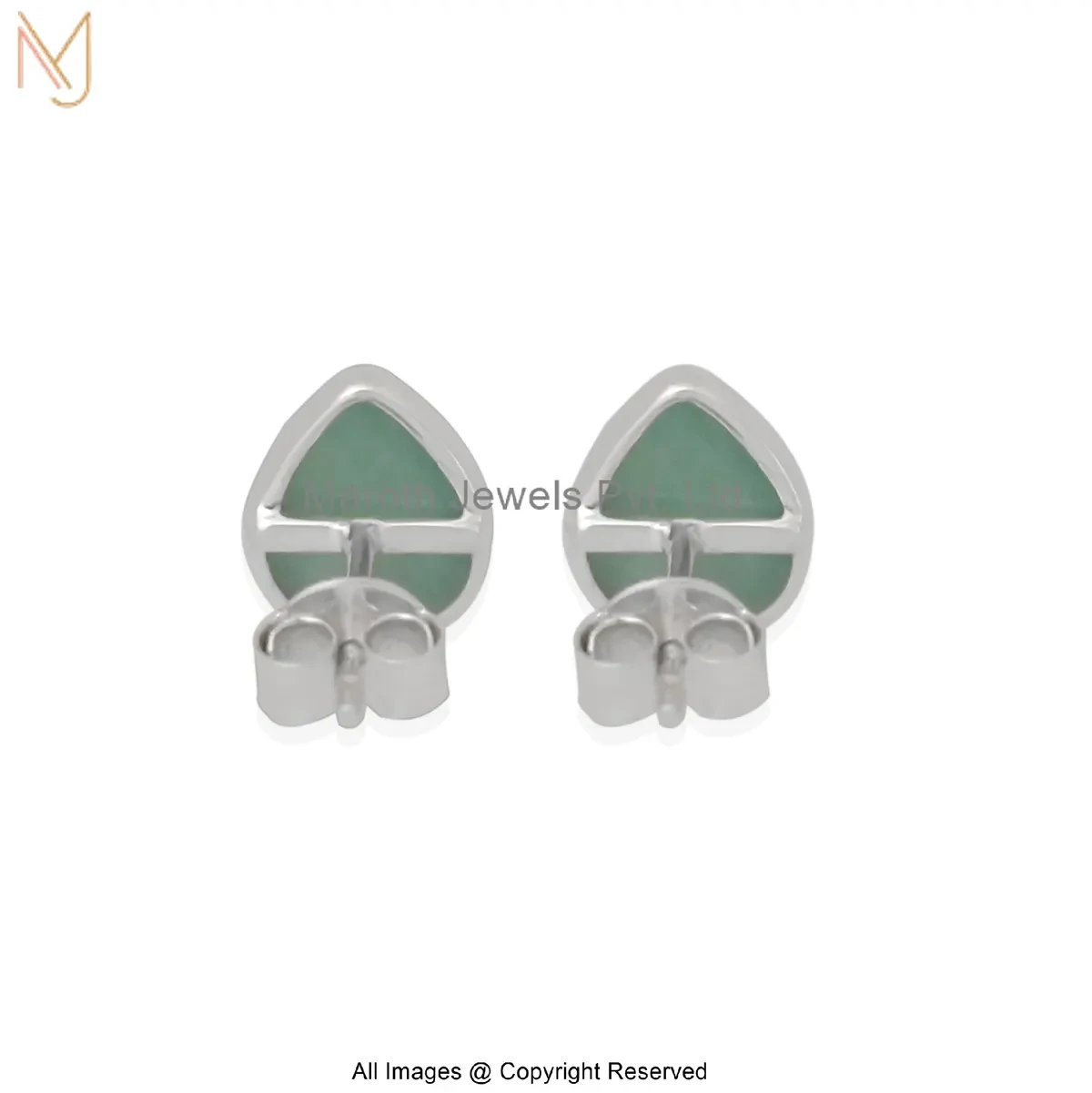 14K White Gold Amazonite Teardrop Stud Earrings Custom Jewelry