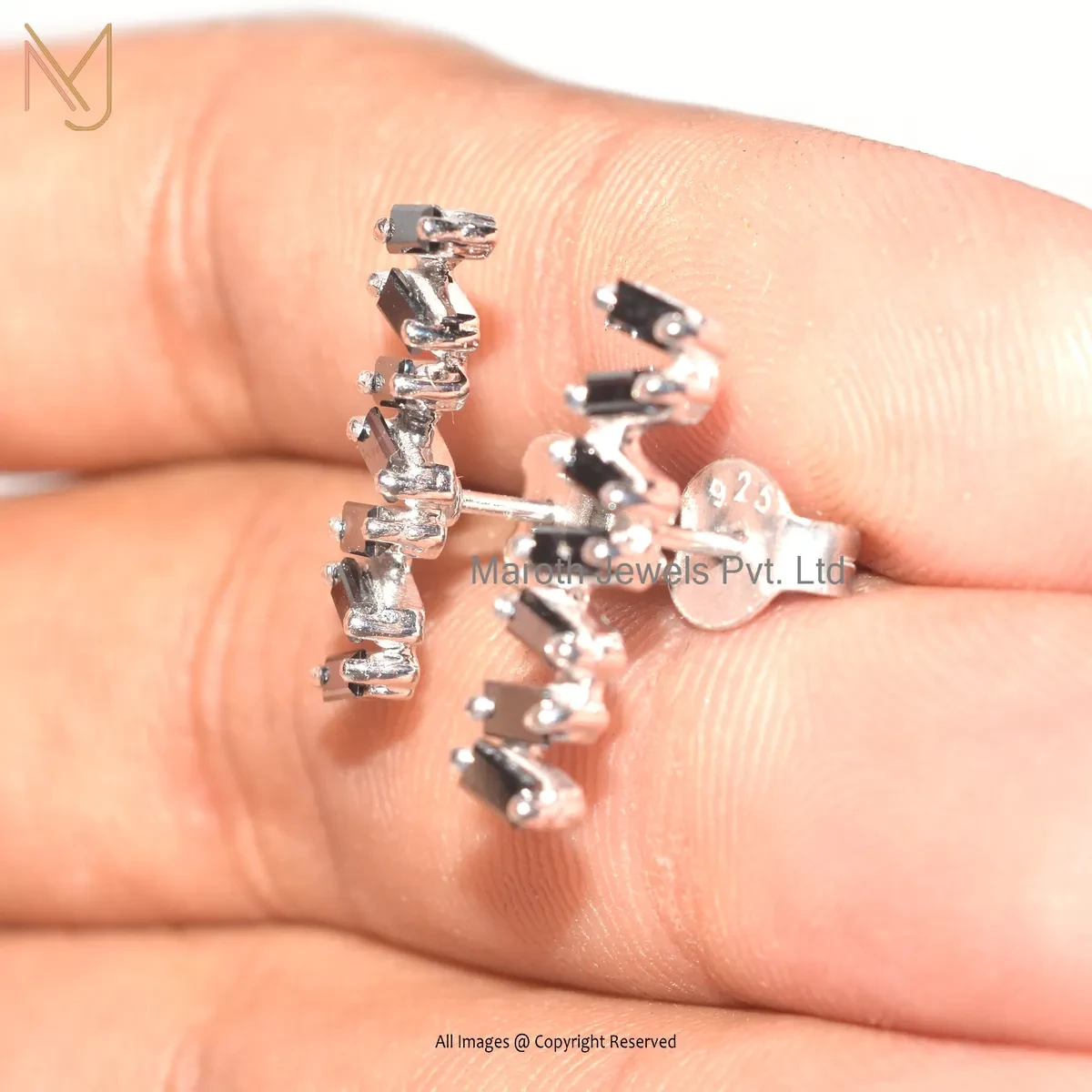 14K White Gold Baguette Black Diamond Stud Earring Jewelry Supplier