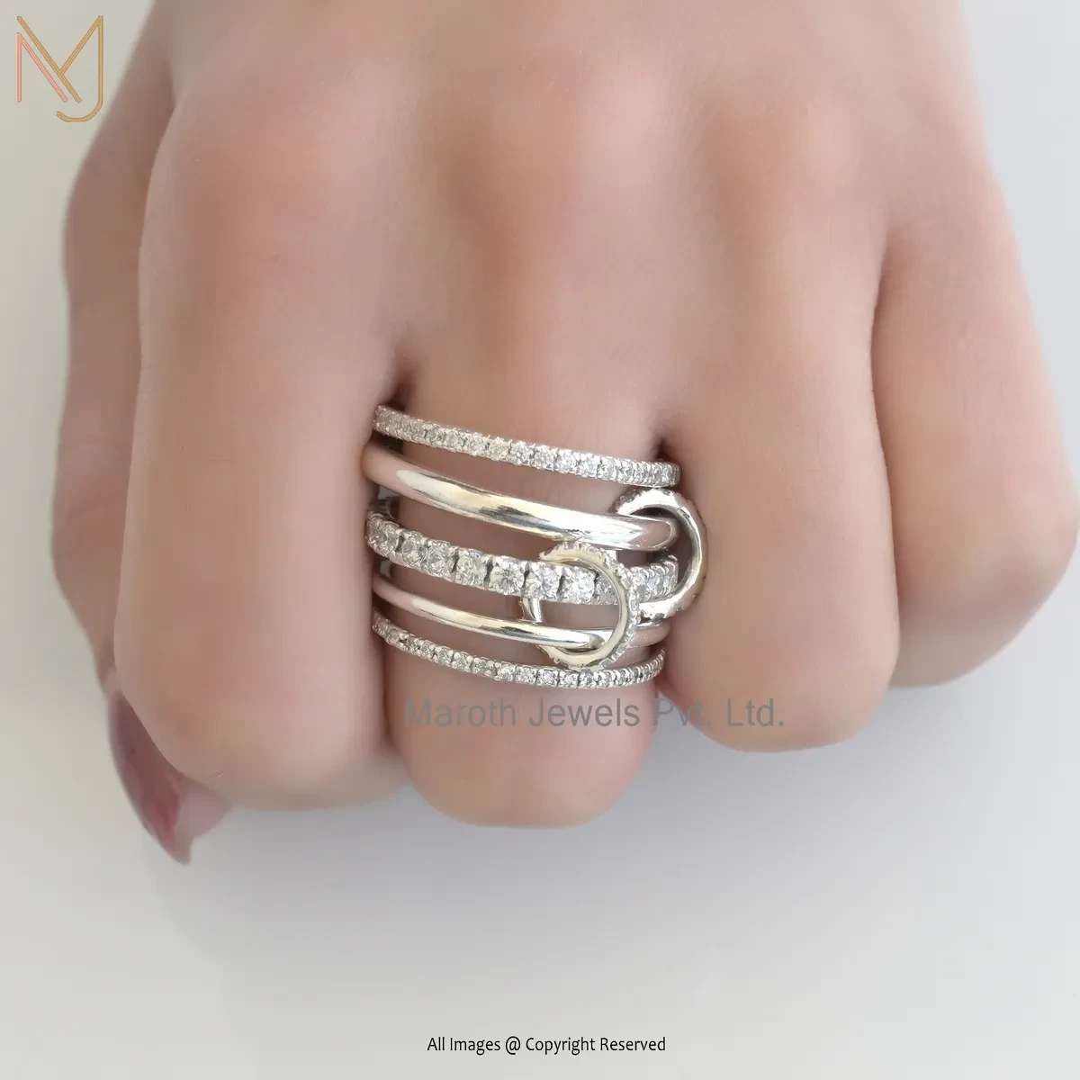 14K White Gold Cubic Zircon Connector Band Ring Manufacturer
