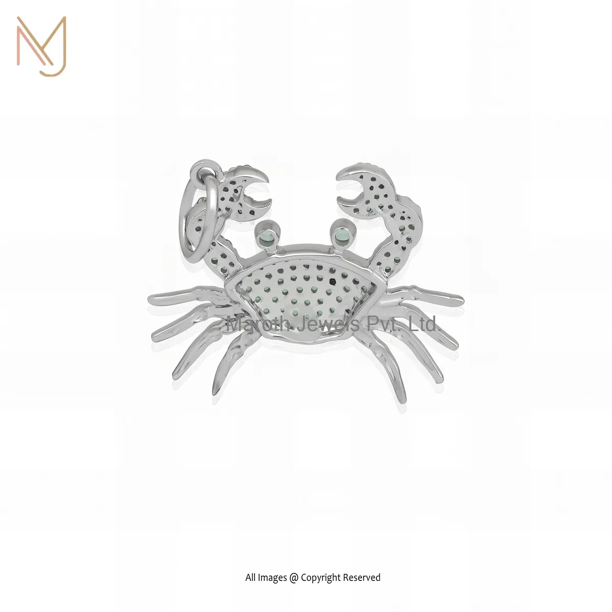 14K White Gold Cubic Zircon Gemstone Crab Pendant Manufacturer