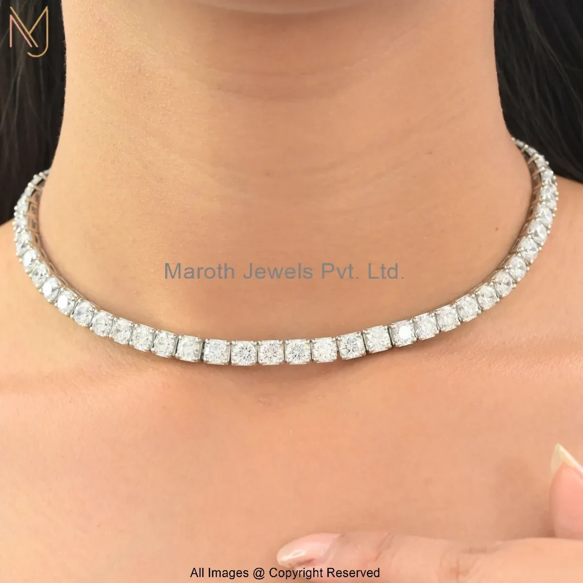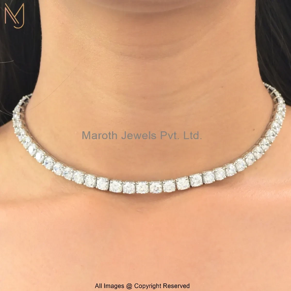 14K White Gold Cubic Zircon Round Diamond Tennis Necklace Manufacturer
