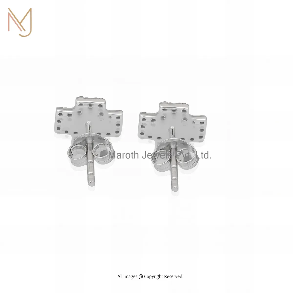 14K White Gold Diamond Cross Stud Earring Jewelry Supplier