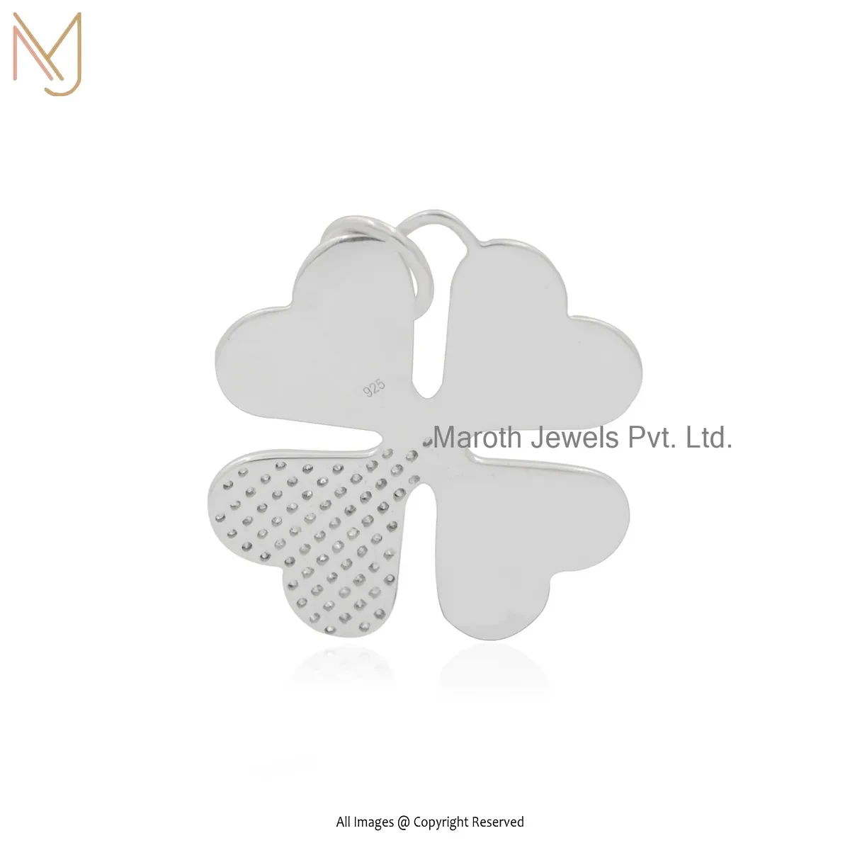 14K White Gold Diamond & Four Leaf Pendant Custom Jewelry