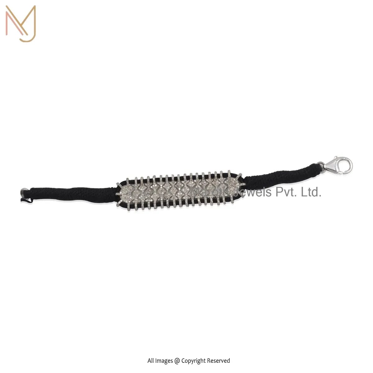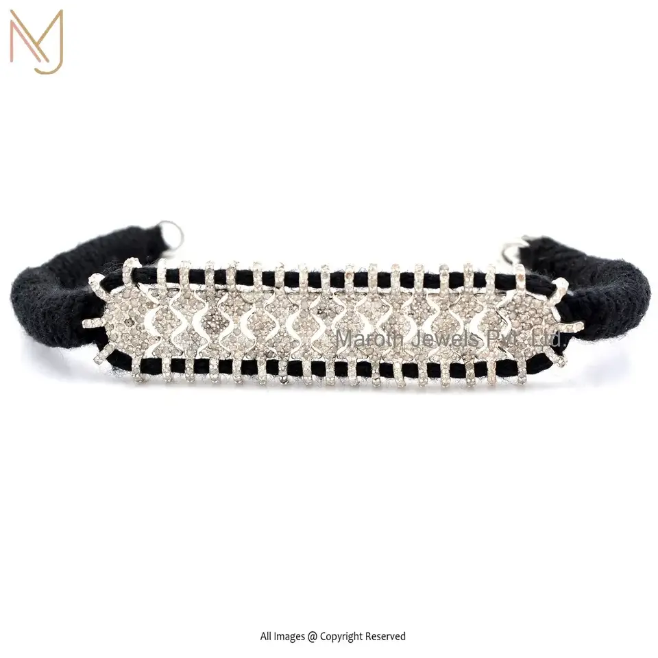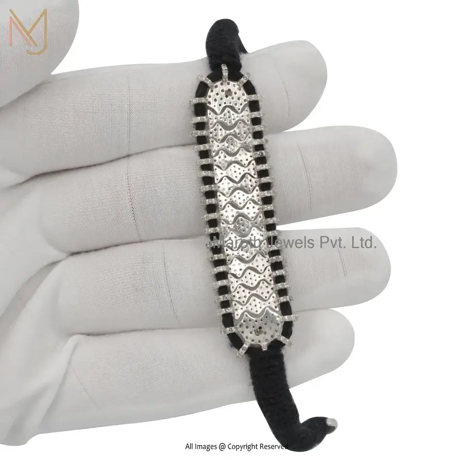 14K White Gold Diamond Macrame Bracelet Custom Jewelry