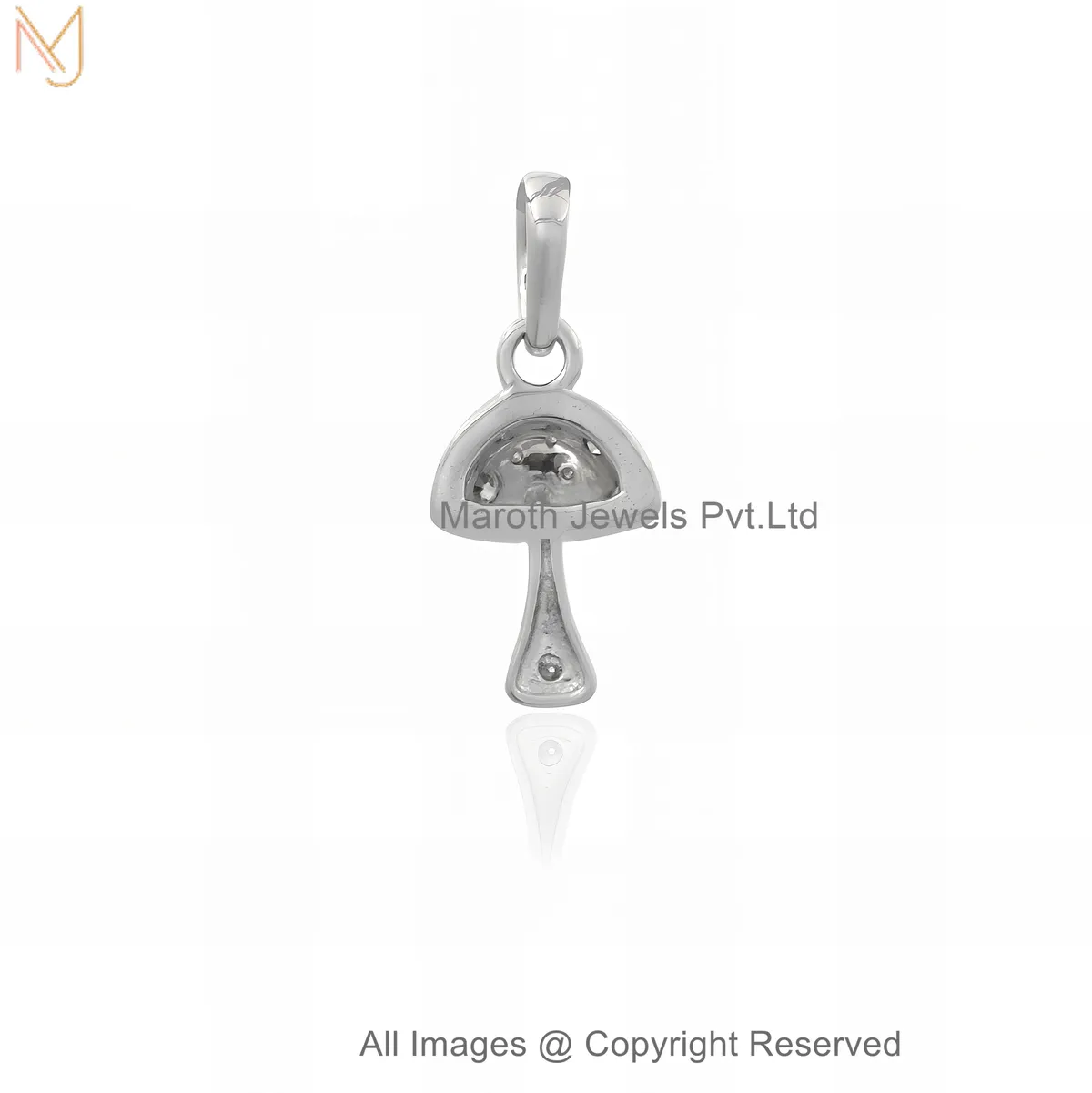 14K White Gold Diamond Mushroom Charm Pendant Custom Jewelry