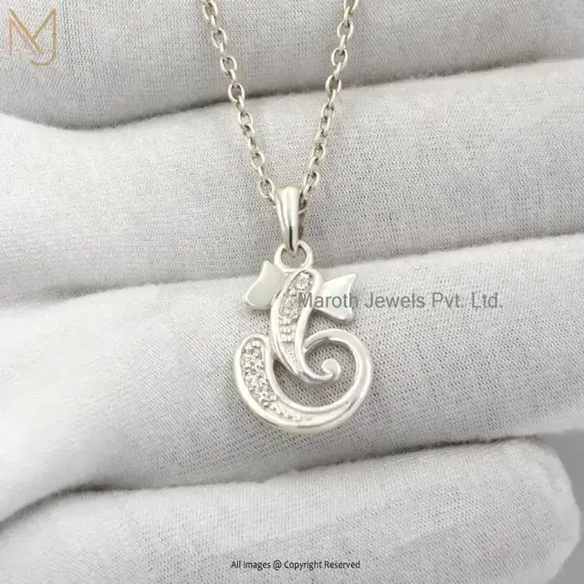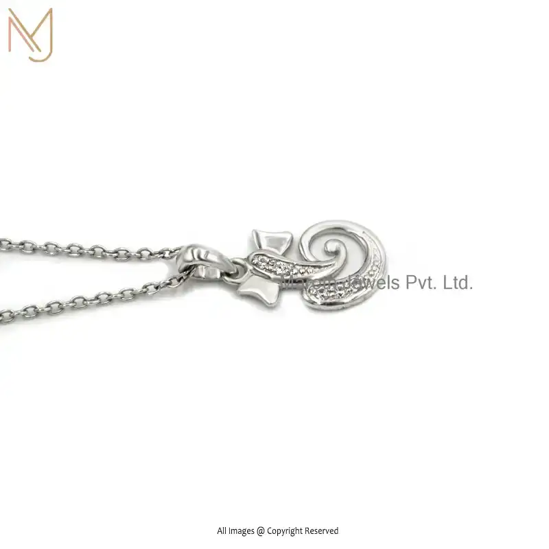 14K White Gold Diamond Serene Ganesha God Necklace Jewelry Supplier