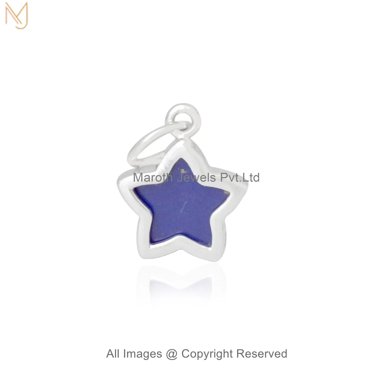 14K White Gold Lapiz Lazuli Star Charm Pendant Manufacturer
