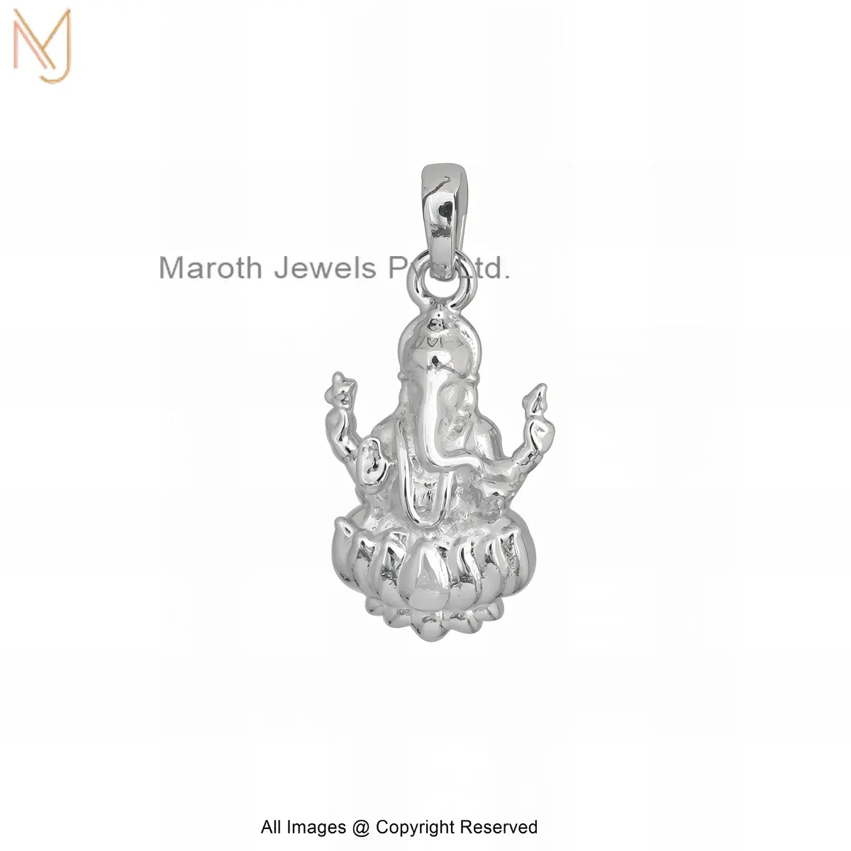 14K White Gold Lotus Flower Lord Ganesha Necklace Custom Jewelry