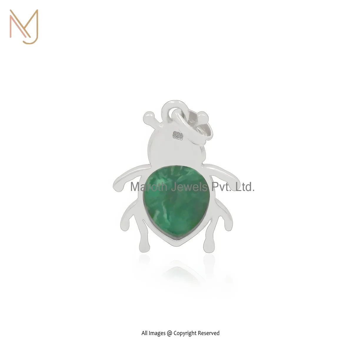 14K White Gold Malachite And Black Spinel Scarab Pendant Custom Jewelry