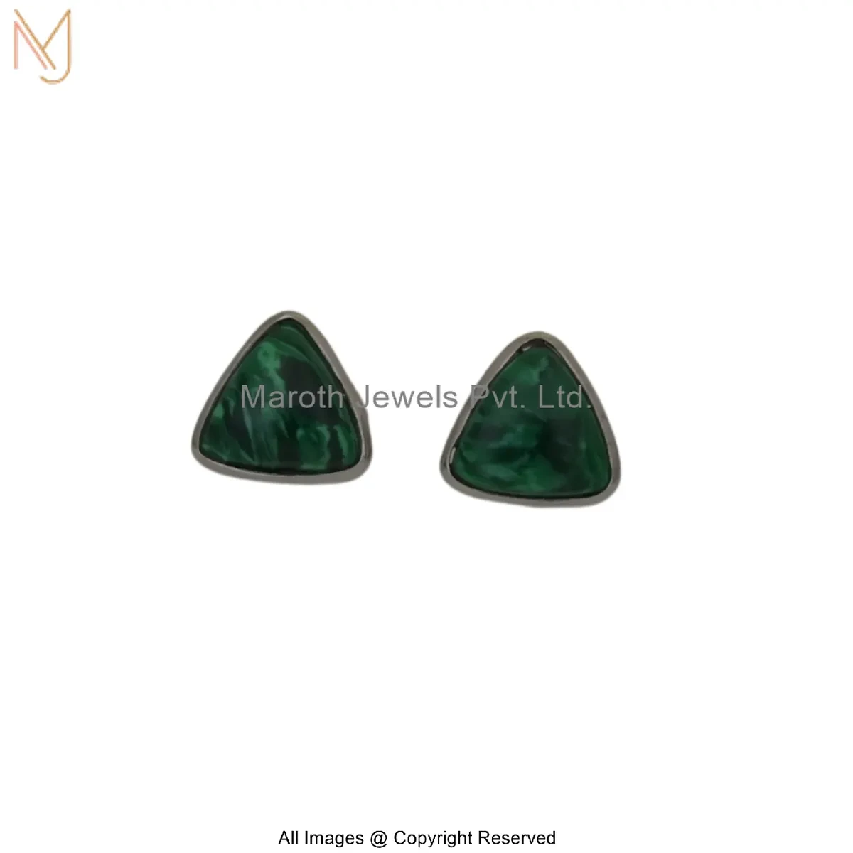 14K White Gold Malachite Triangle Stud Earring Custom Jewelry