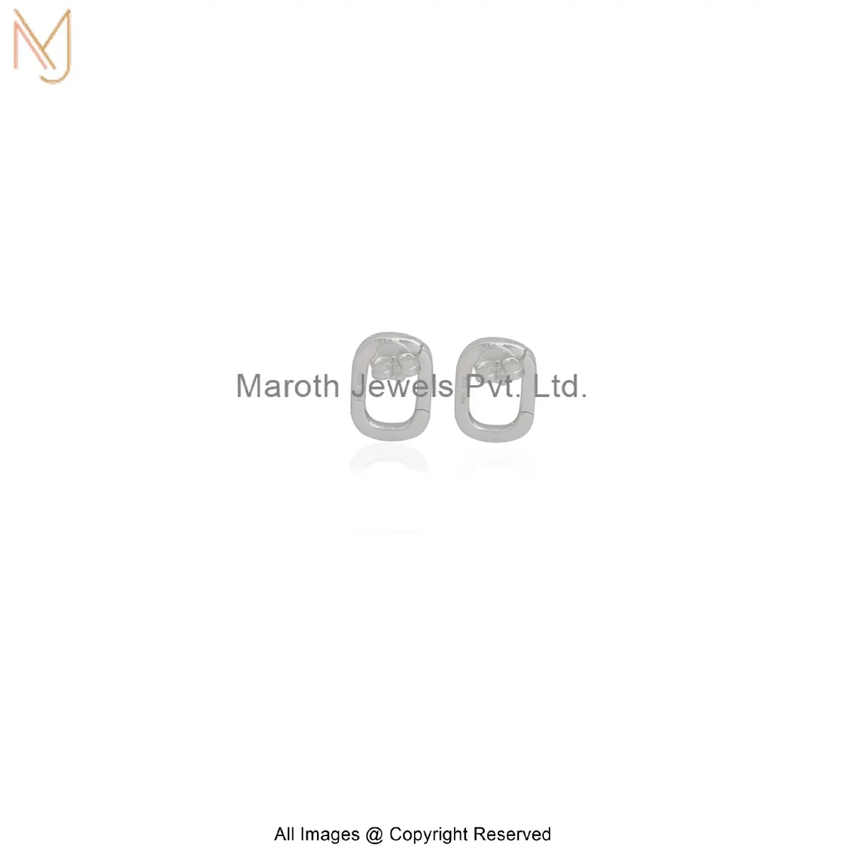14K White Gold Minimal Open Oval Silver Stud Earrings Custom Jewelry