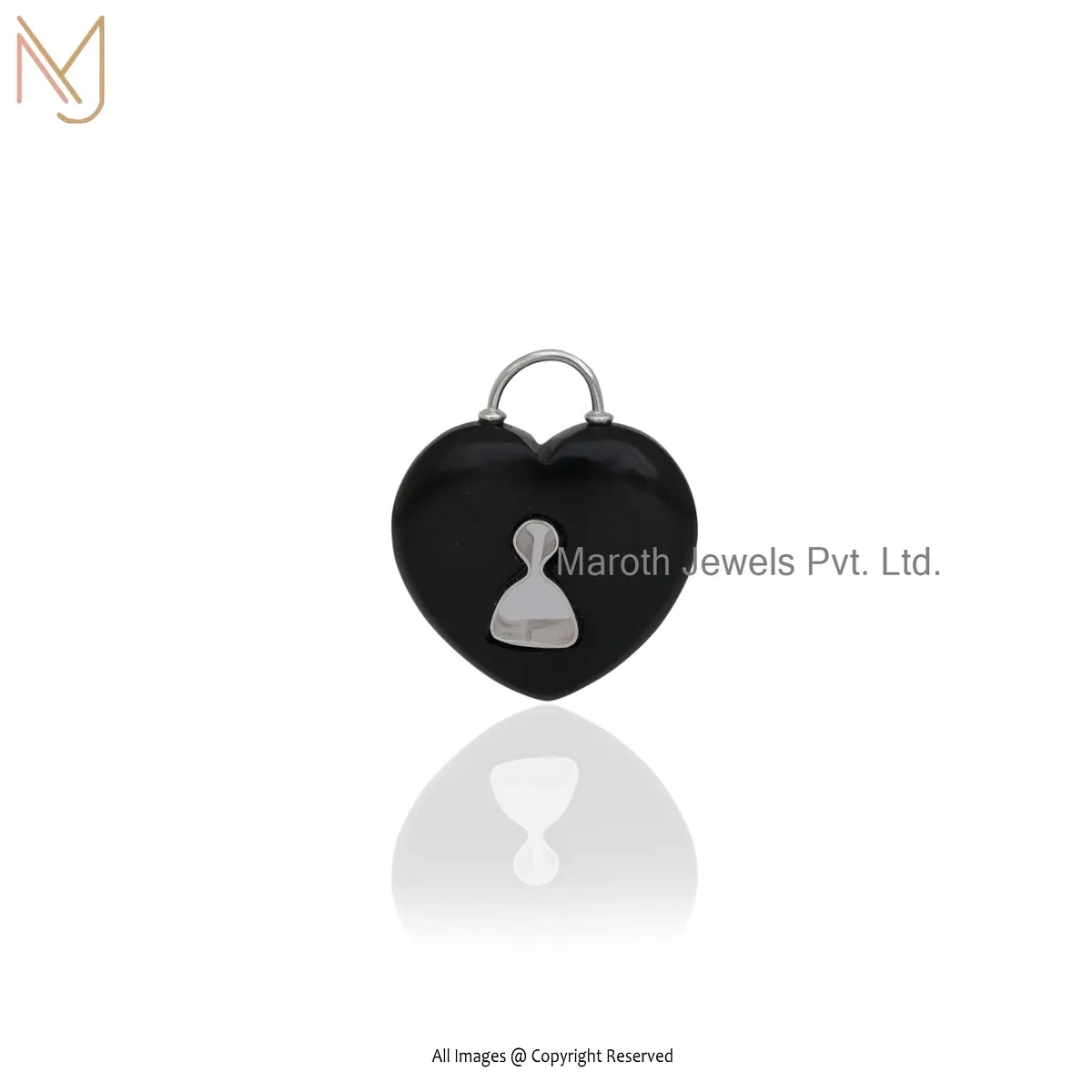 14K White Gold Moissanite & Black Onyx Gemstone Heart Pendant Custom Jewelry