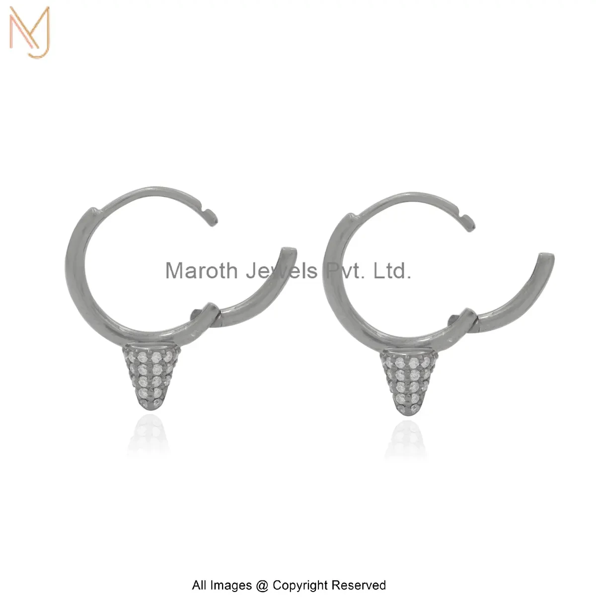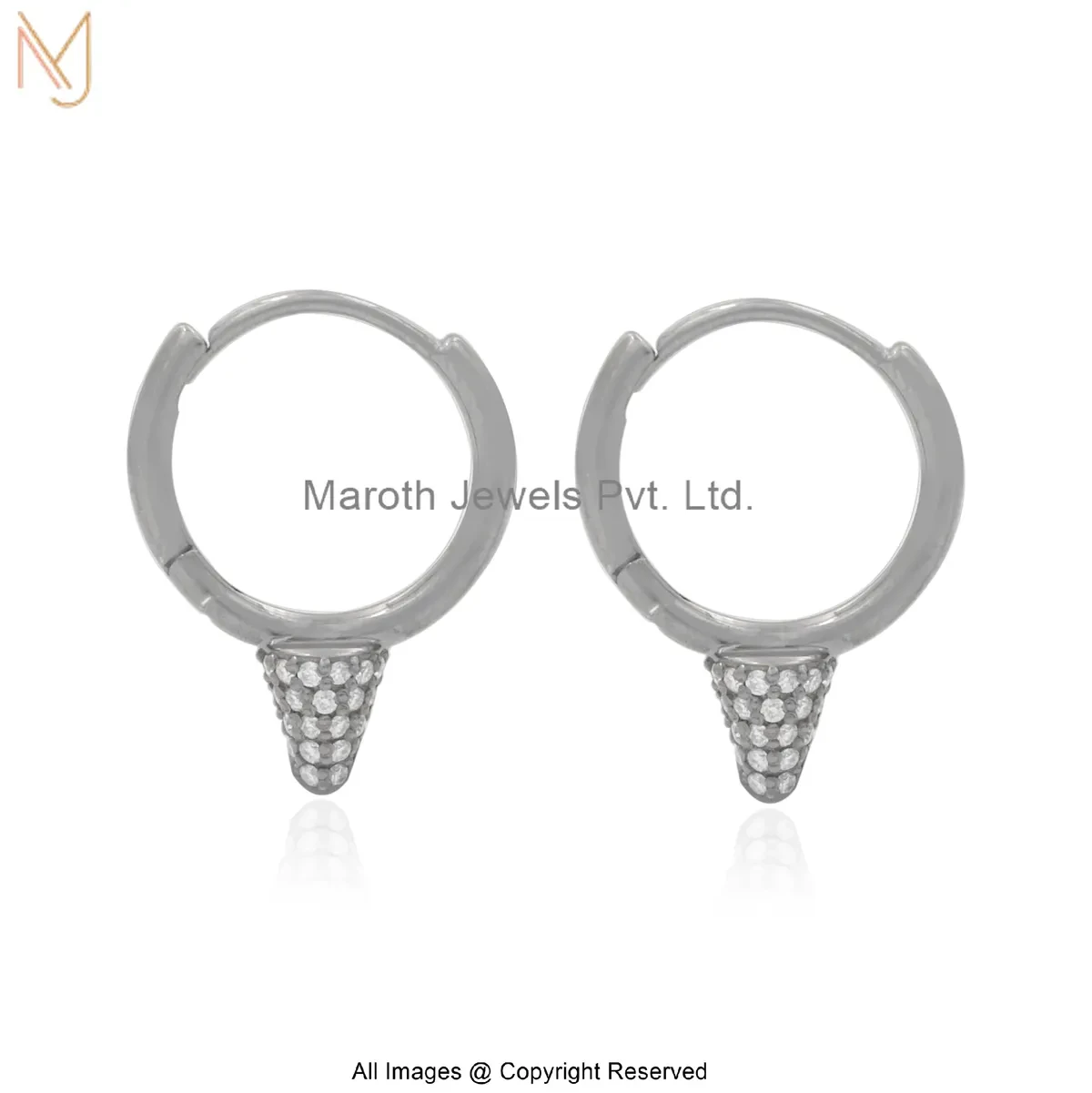14K White Gold Moissanite Pave Spike Drop Hoop Earrings Manufacturer