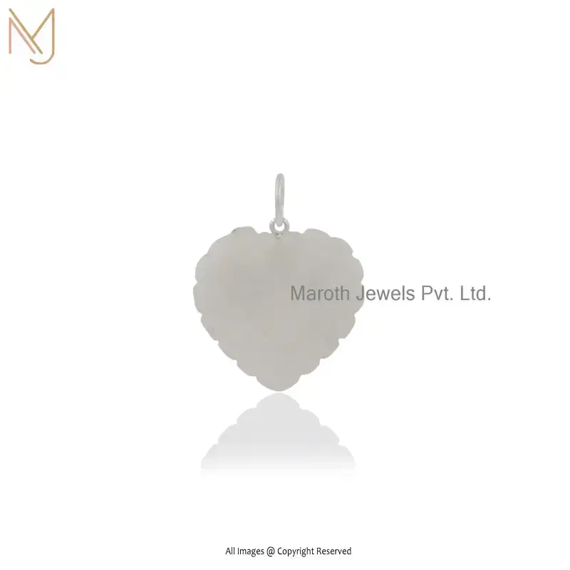 14K White Gold Moonstone & Cubic Zircoina Owl Evil Eye Heart Pendant USA