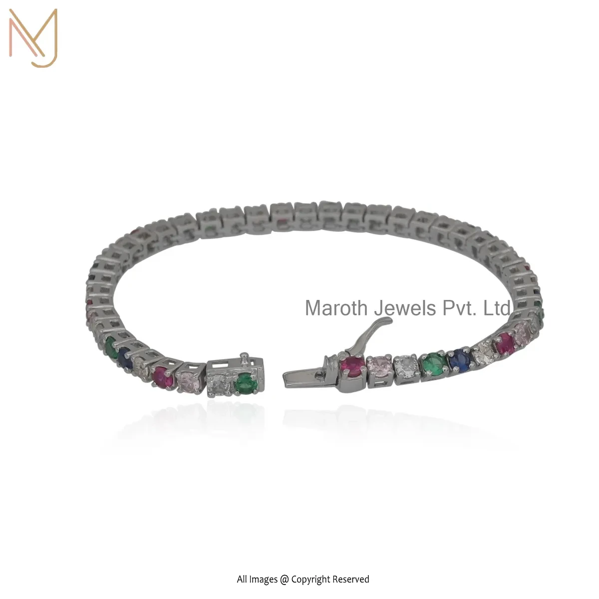 14K White Gold Multi Gemstone Tennis Bracelet Jewelry Supplier