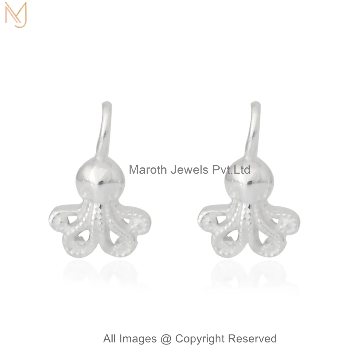 14K White Gold Octopus Charm Earring Custom Jewelry