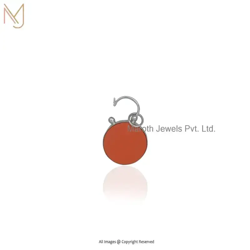 14K White Gold Orange Coral & Black Onyx Butterfly Padlock Pendant Jewelry Supplier
