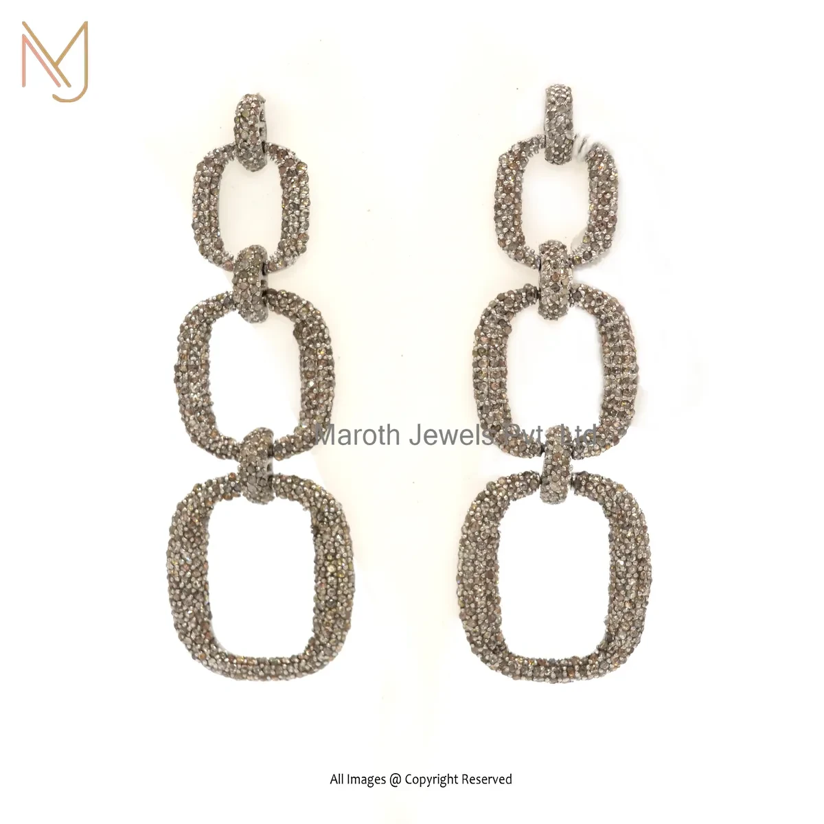 14K White Gold Pave Diamond Dangle Drop Earring Custom Jewelry
