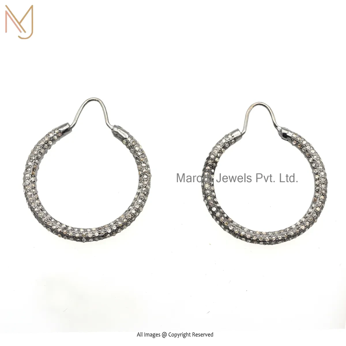 14K White Gold Pave Diamond Hoop Earring Jewelry Supplier