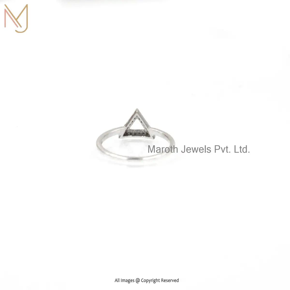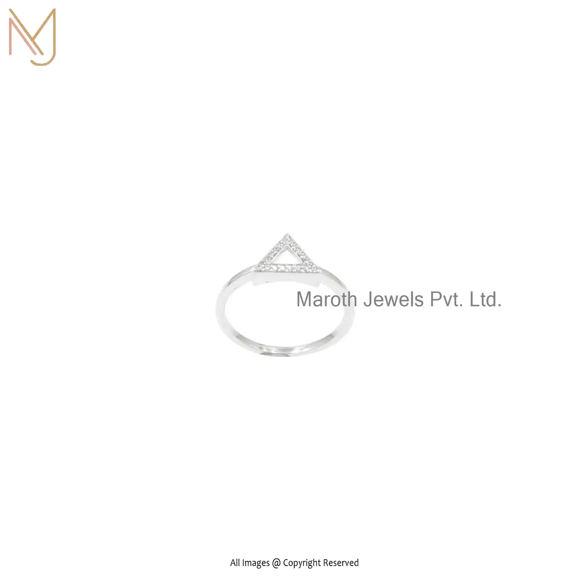 14K White Gold Pave Diamond Open Triangle Ring Manufacturer