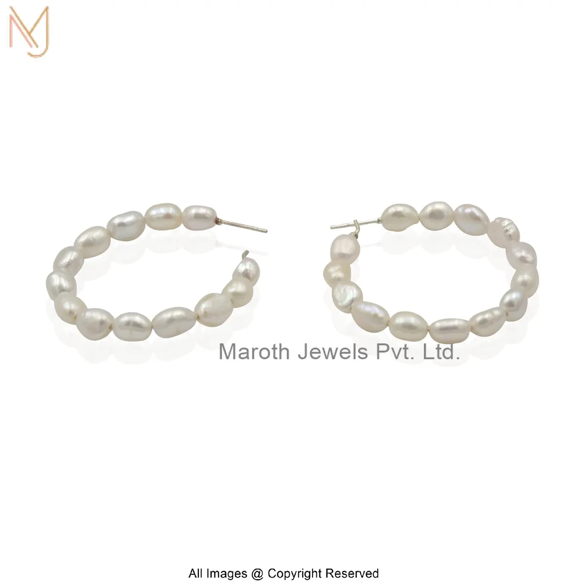 14K White Gold Pearl Hoop Earring Jewelry Supplier