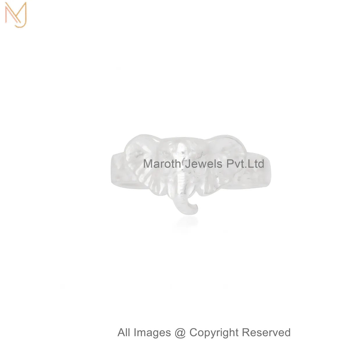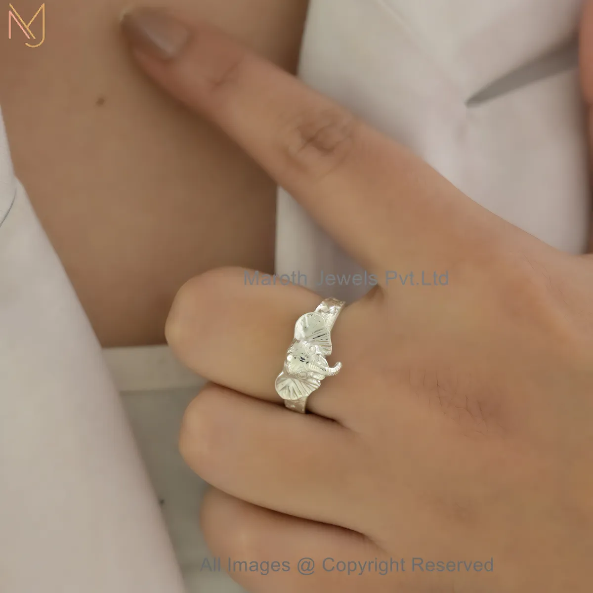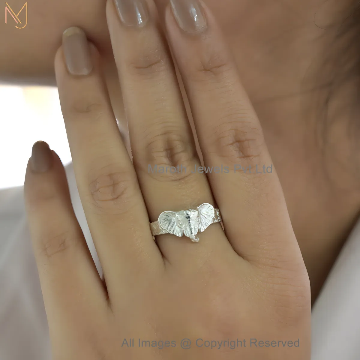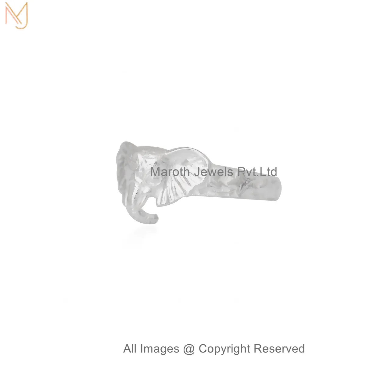 14K White Gold Royal Carved Elephant Face Ring Manufacturer