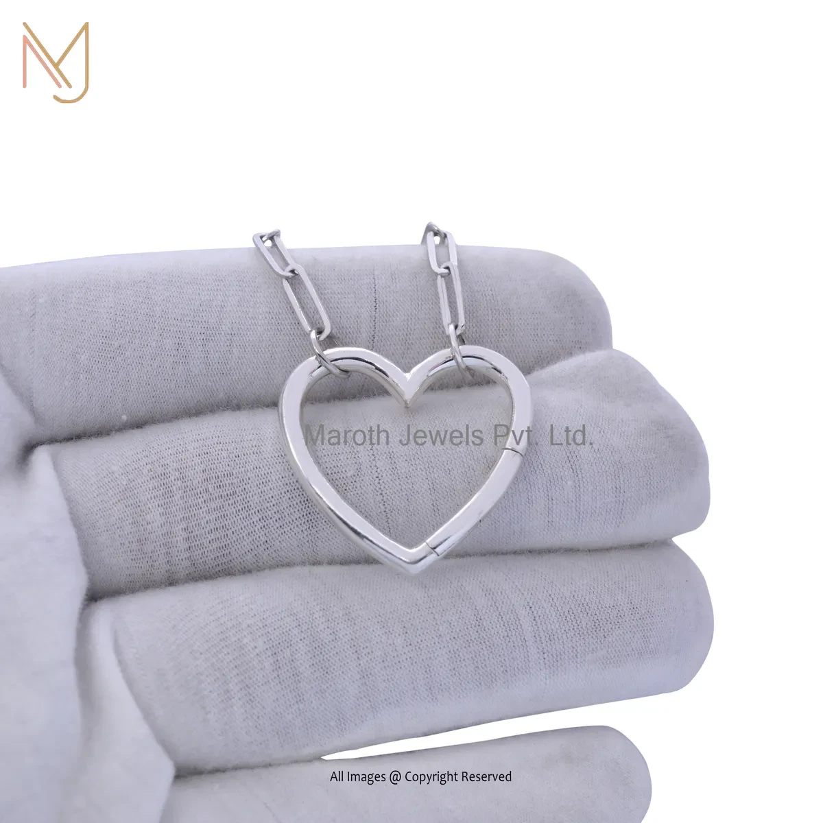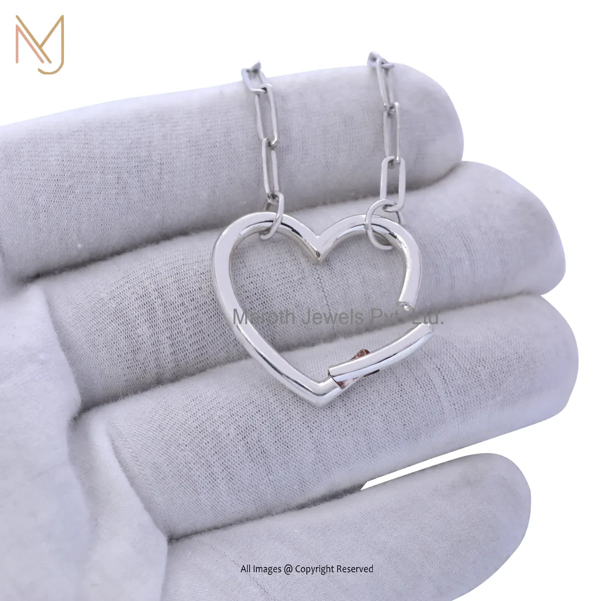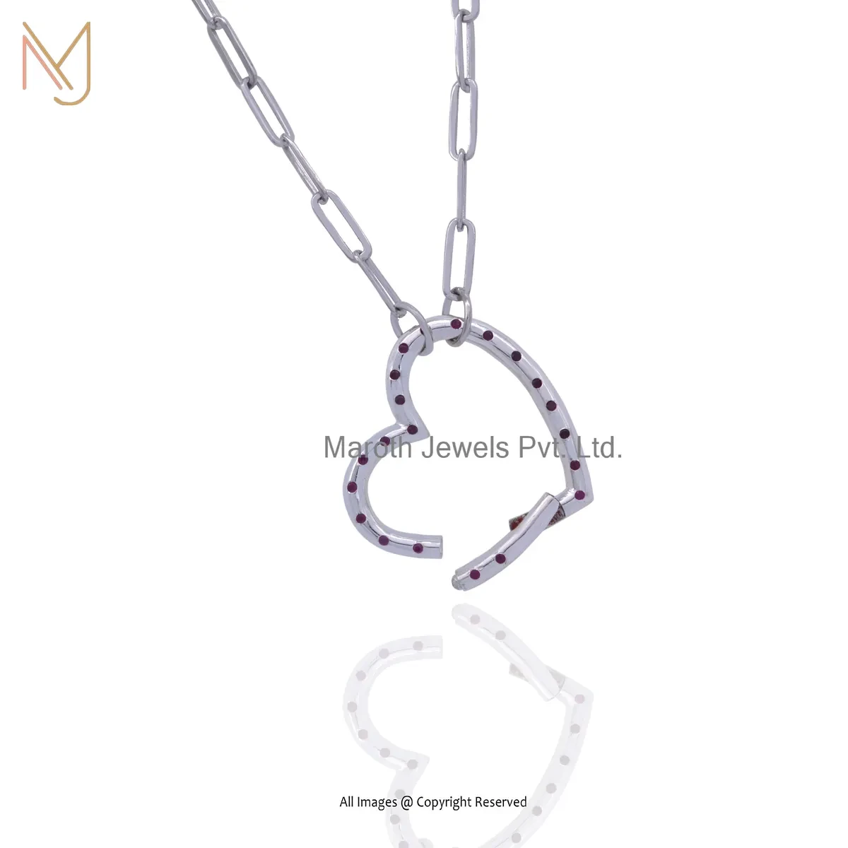 14K White Gold Ruby Heart Lock Charm Holder Manufacturer