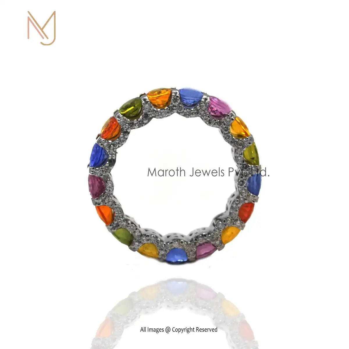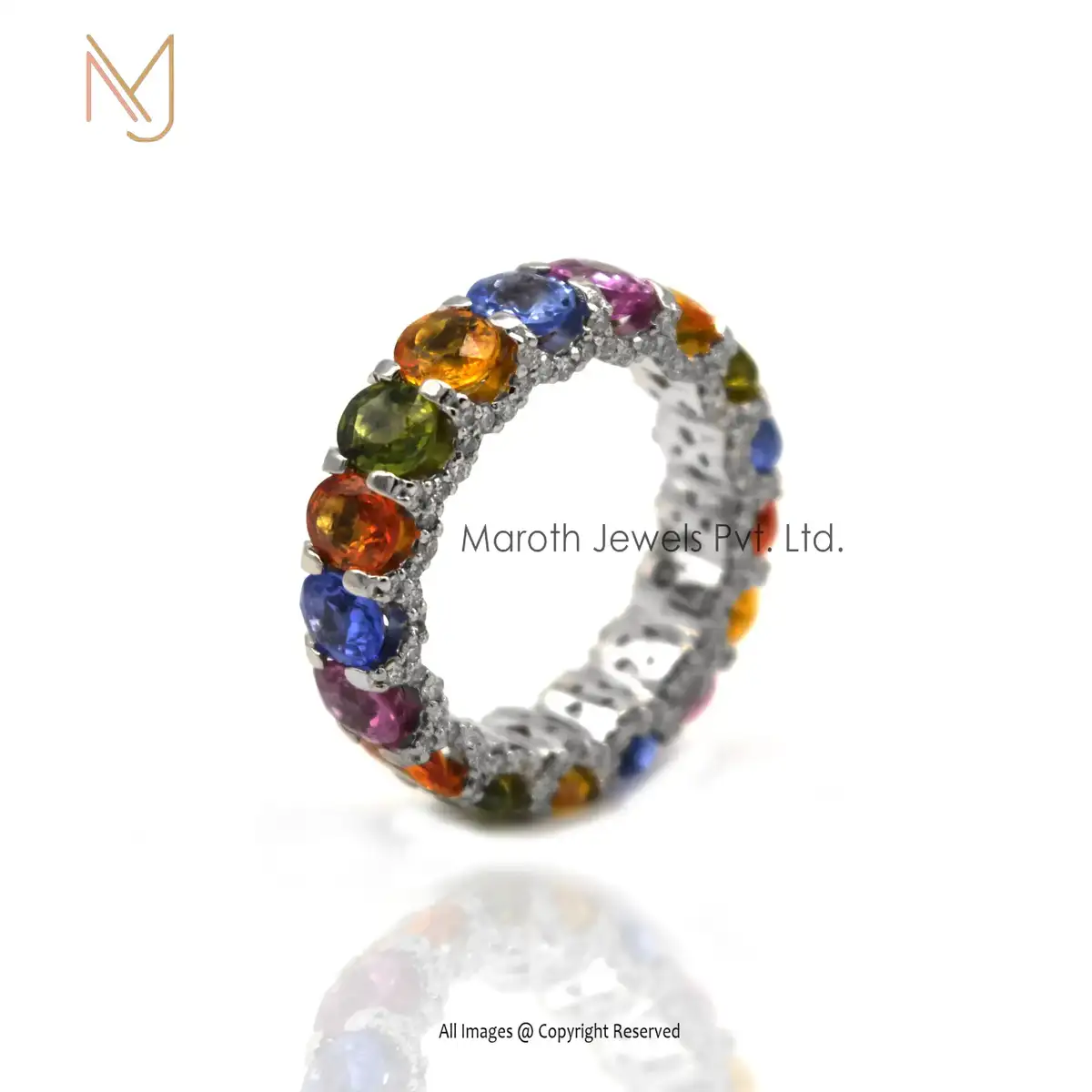 14K White Gold Single Cut Diamond Solid Gold Multi Sapphire Wedding Band Ring Custom Jewelry
